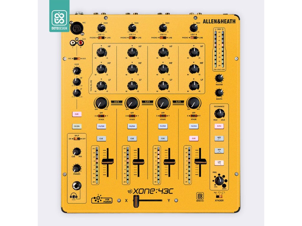 Naklejka na mikser Allen & Heath XONE:43C w wersji FULL COLORS, kolor dark yellow (ciemnożółty).