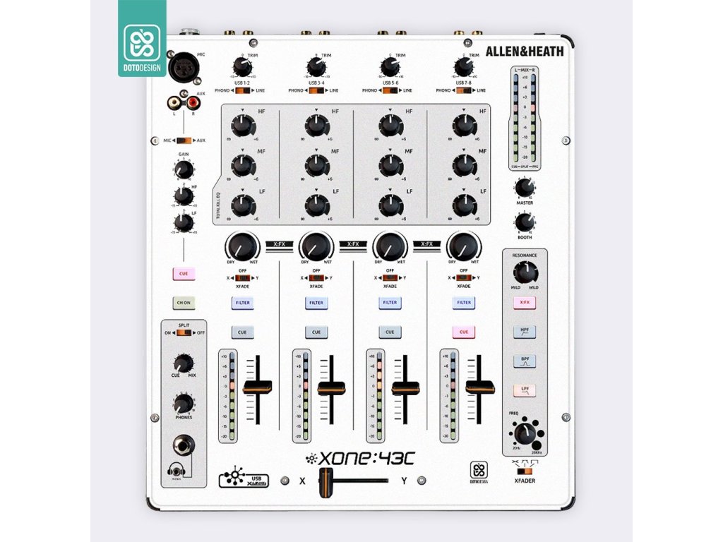 Naklejka na mikser Allen & Heath XONE:43C w wersji FULL COLORS, kolor biały.