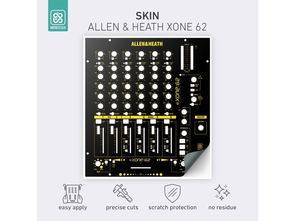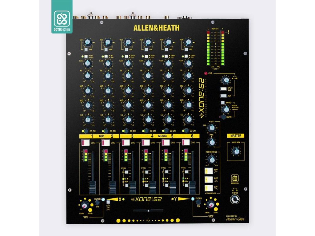 Naklejka na mikser Allen & Heath XONE:62 w wersji COLORS, kolor yellow (żółty).