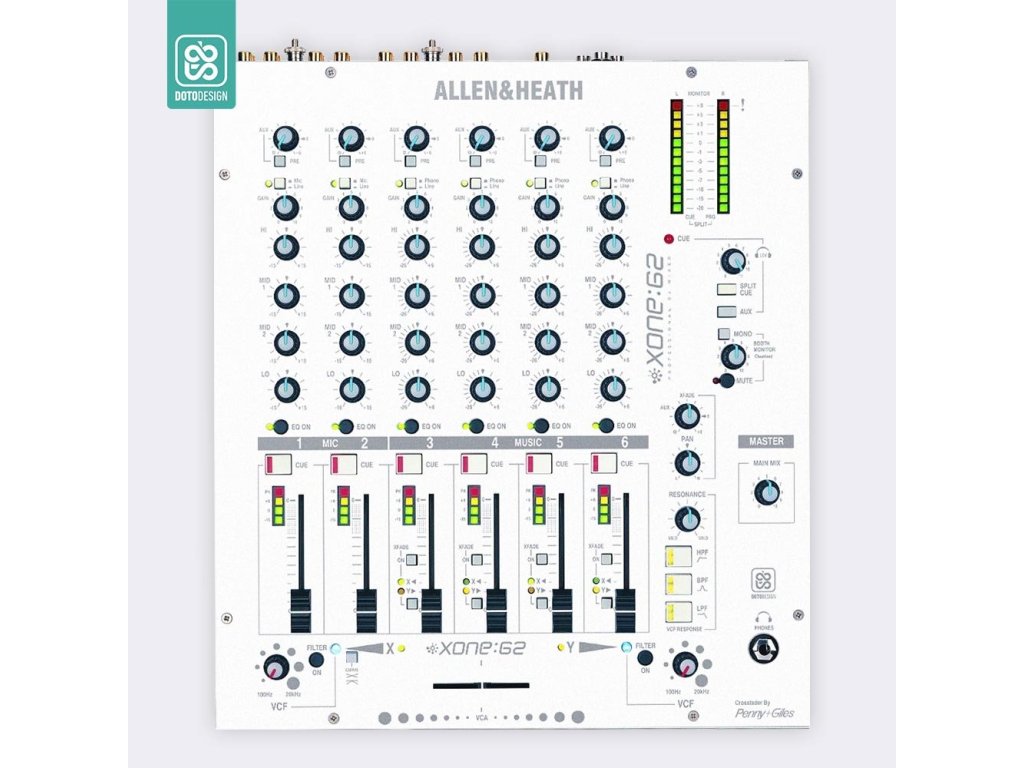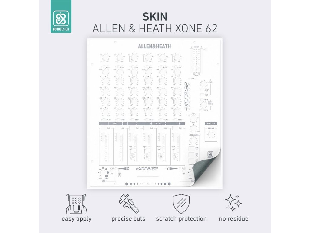 Naklejka na mikser Allen & Heath XONE:62 w wersji DAY & NIGHT, kolor biały.