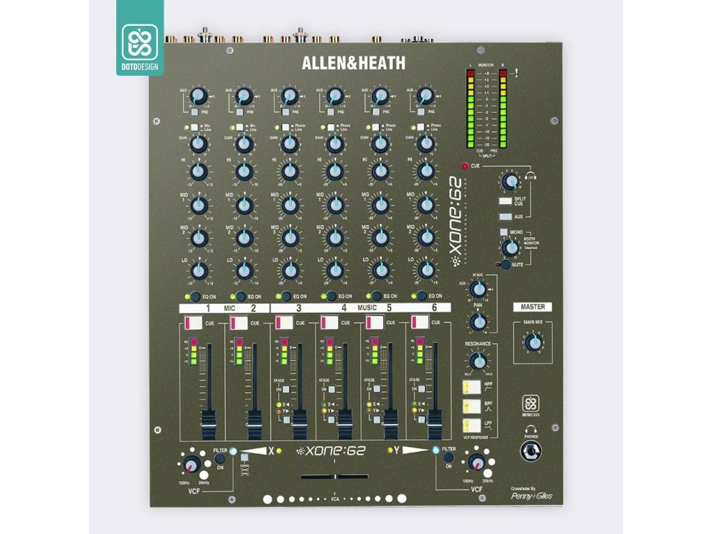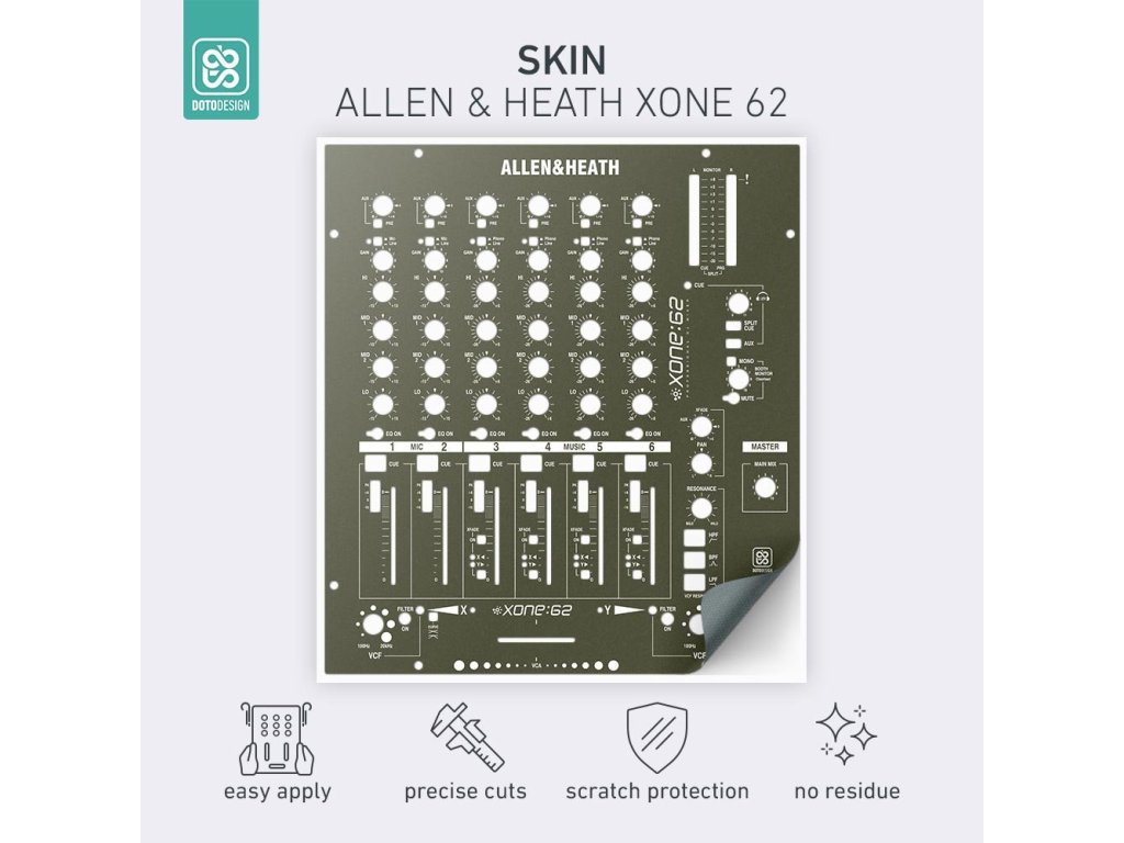 Naklejka na mikser Allen & Heath XONE:62 w wersji FULL COLORS, kolor army green (wojskowa zieleń).