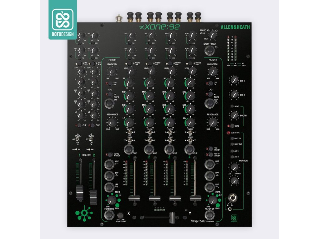 Naklejka na mikser Allen & Heath XONE:92 w wersji COLORS DVS, kolor green V.1 (zielony V.1).