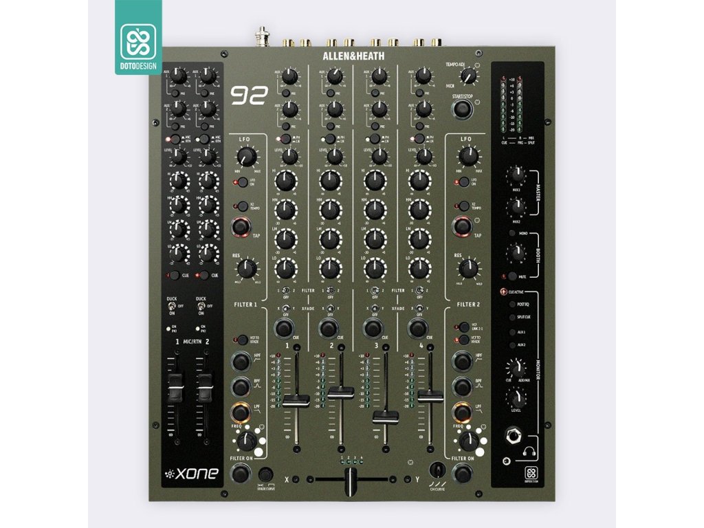 Naklejka na mikser Allen & Heath XONE:92 MK2 w wersji FULL COLORS, kolor army green (wojskowa zieleń).