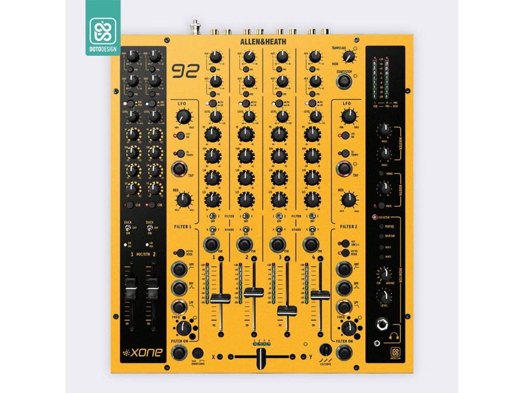 Naklejka na mikser Allen & Heath XONE:92 MK2 w wersji FULL COLORS, kolor dark yellow (ciemnożółty).