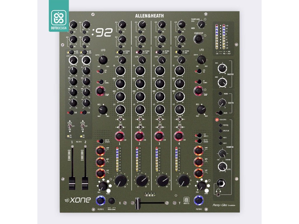 Naklejka na mikser Allen & Heath XONE:92 Rotary w wersji FULL COLORS, kolor army green V.2 (wojskowa zieleń V.2).