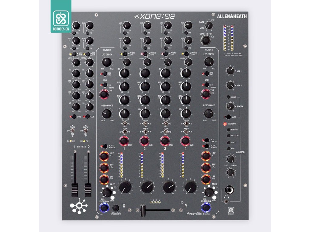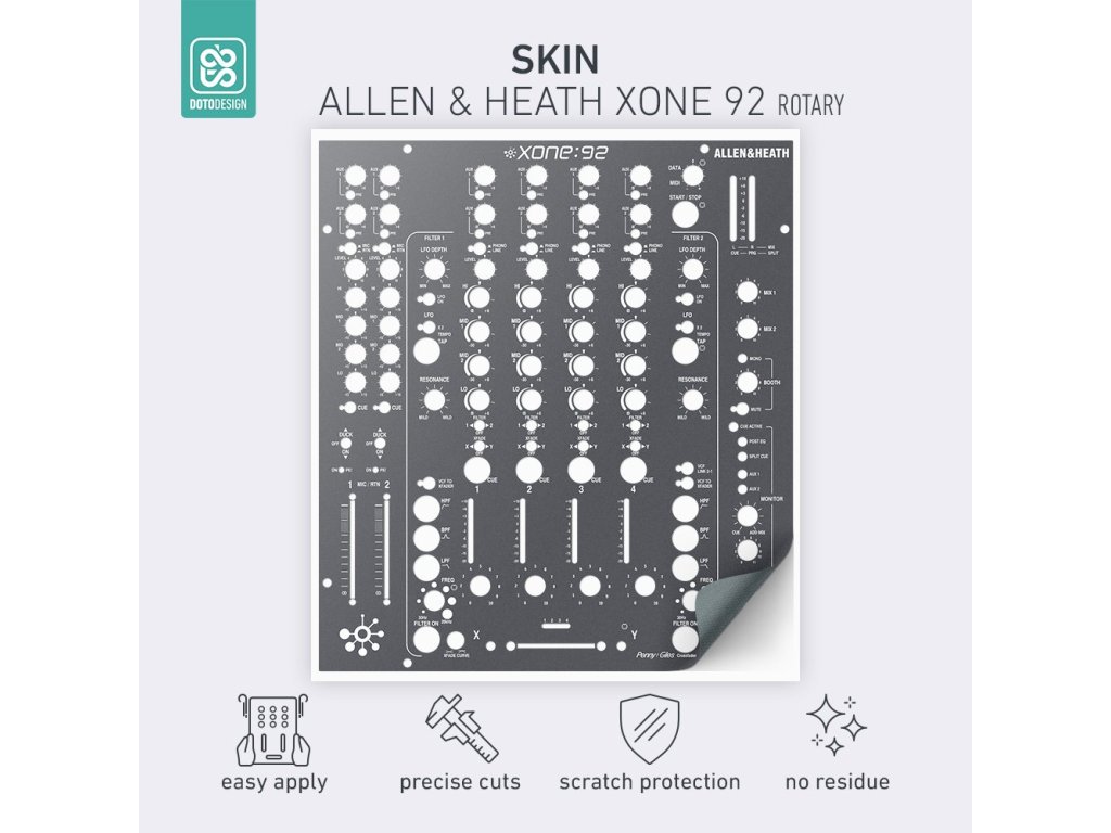 Naklejka na mikser Allen & Heath XONE:92 Rotary w wersji FULL COLORS, kolor graphite grey V.1 (grafitowa szarość V.1).