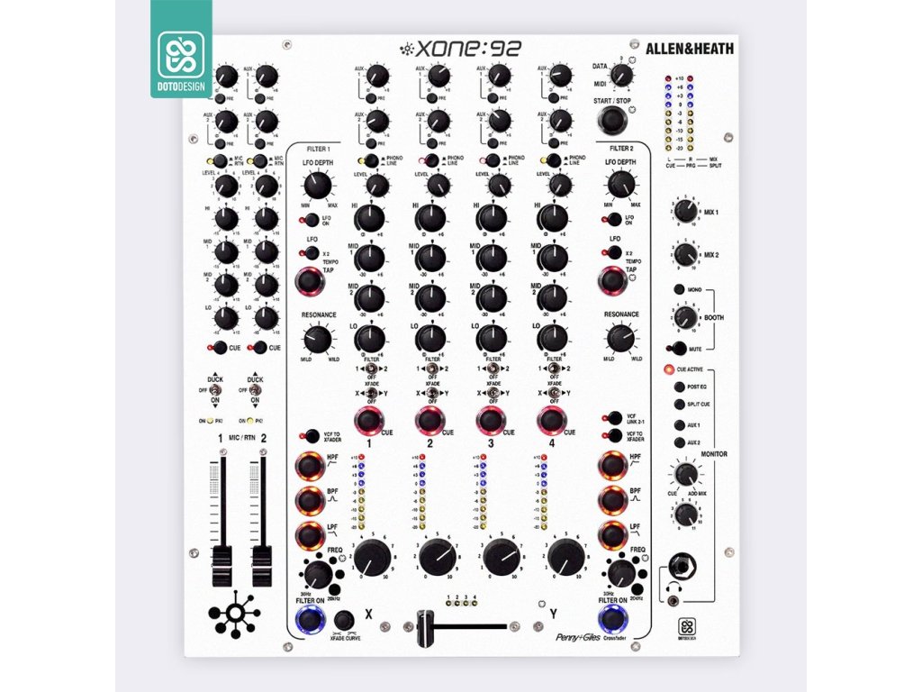 Naklejka na panel mikserski Allen & Heath XONE:92 Rotary w wersji FULL COLORS, kolor white V.1 (biały V.1).