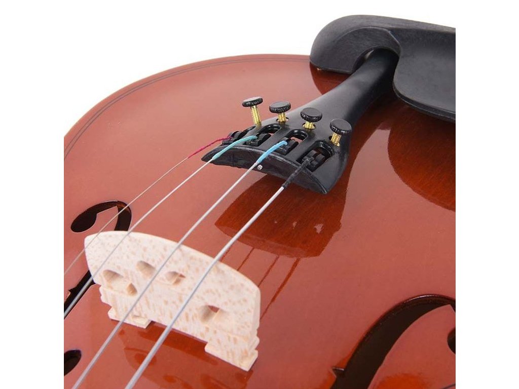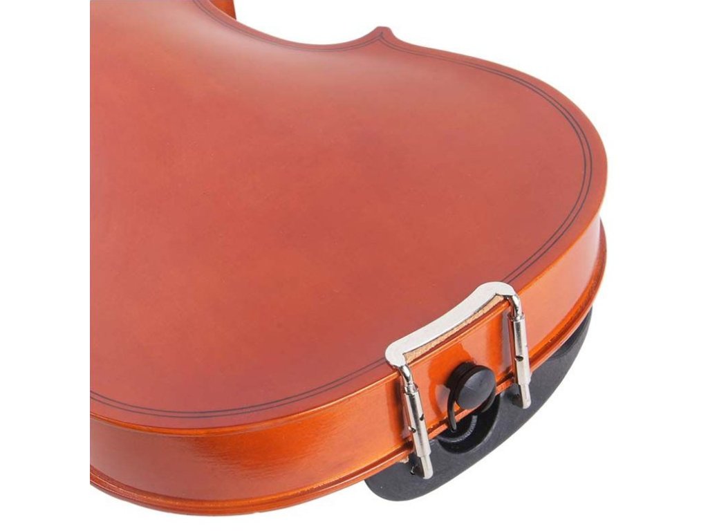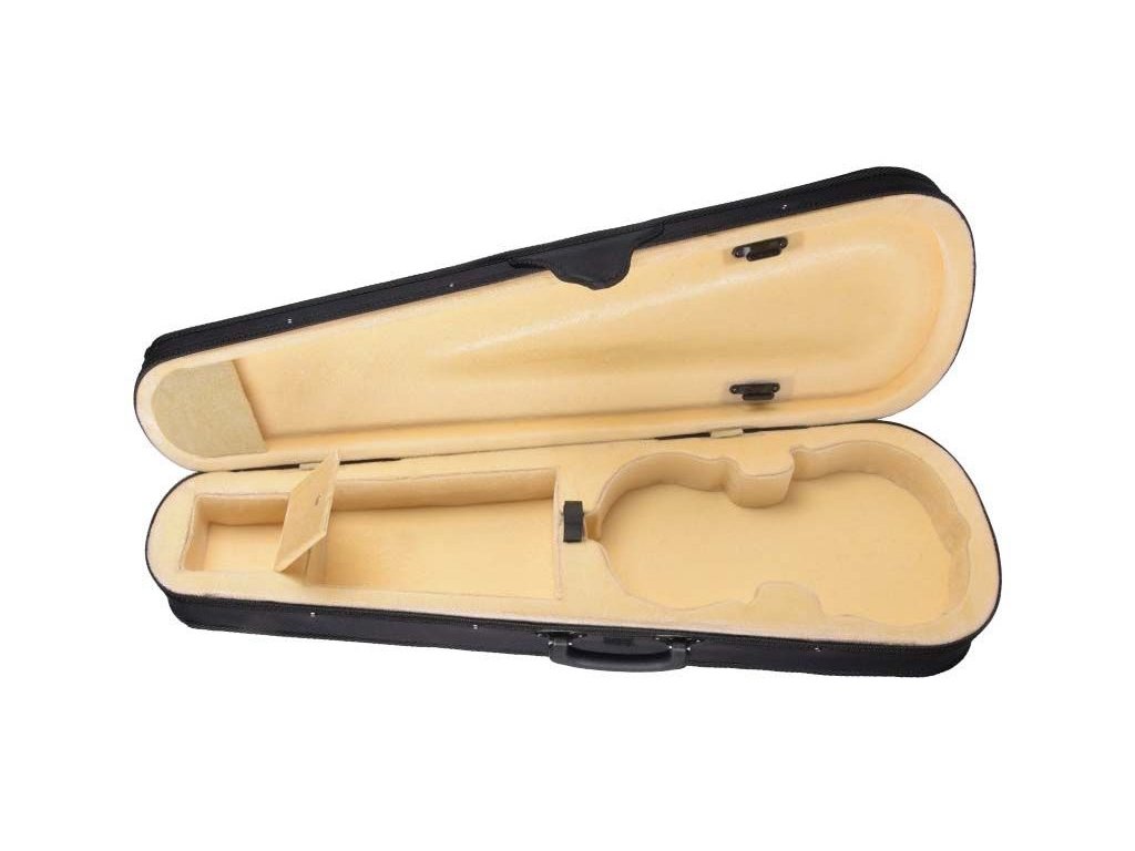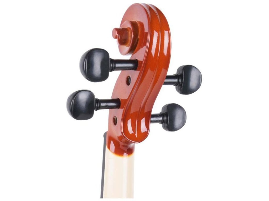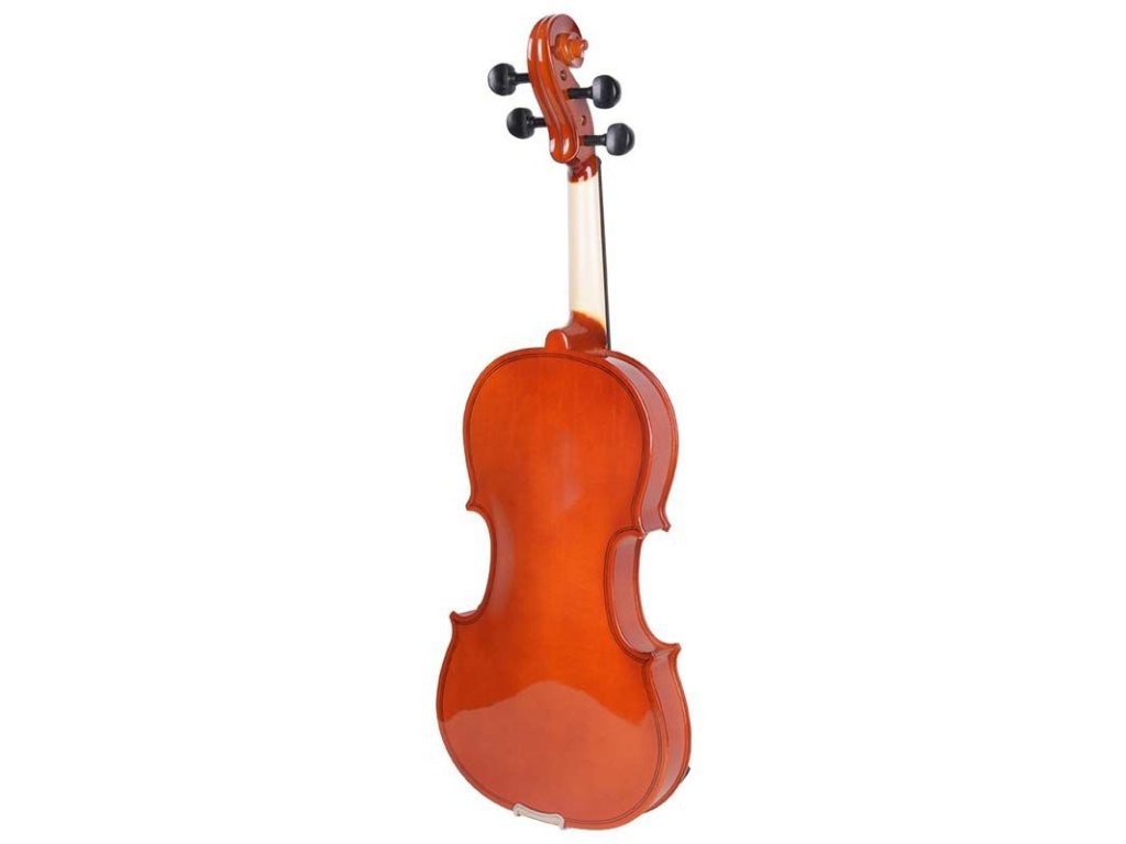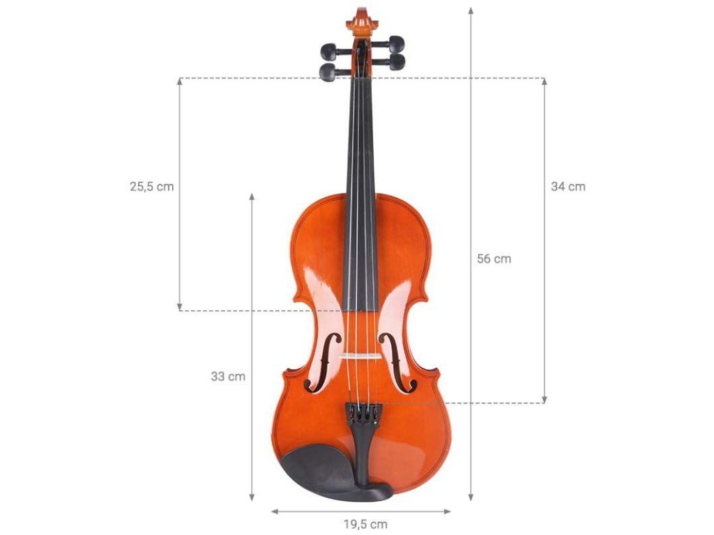 Bardzo ładnie wykonane, klasycznie brzmiące skrzypce, uzupełnione eleganckim futerałem, smyczkiem i kalafonią. Instrument dzięki skróconemu zakresowi idealnie nadaje się do nauki dzieci i do codziennej gry. Skrzypce są wykonane z wyselekcjonowanego drewna lipowego, które charakteryzuje się doskonałymi właściwościami akustycznymi. Podstrunnica została wykonana z ciemnego hebanu. Wysoki połysk nadaje całemu instrumentowi klasyczny wygląd. Instrument można precyzyjnie nastroić, a dzięki ergonomicznemu podparciu podbródka gra na skrzypcach jest bardzo wygodna.