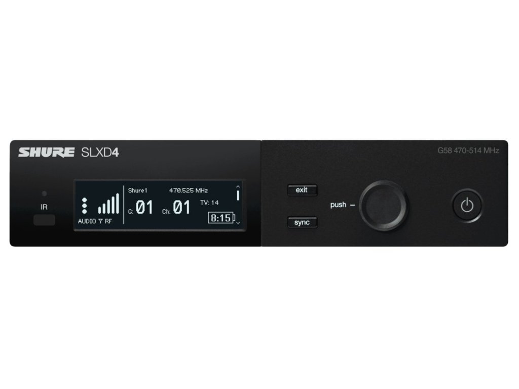W zależności od trybu pracy można bez niepożądanych interferencji obsługiwać do 12 systemów jednocześnie. Szybkie uruchomienie zestawu ułatwia automatyczne parowanie IR odbiornika z nadajnikiem. Do przejrzystego sterowania przyczyniają się wysoko kontrastowe wyświetlacze LCD. Odbiornik SLXD4 jest wyposażony w złącza wyjściowe XLR i jack (TRS) umieszczone z tyłu. Port Ethernet służy do połączenia sieciowego z innymi kompatybilnymi komponentami. Bodypack SLXD1 jest wyposażony w czteropinowe mini złącze TQG, które służy do podłączenia dołączonego mikrofonu. Nadajnik jest w stanie pracować do 8 godzin na jednym ładowaniu. Do zasilania można użyć dwóch baterii AA lub akumulatora Shure SB903. Mikrofon nagłowny SM35 o kardioidalnej charakterystyce kierunkowej zapewnia czysty, niezakłócony dźwięk w całym spektrum od 40 Hz do 20 kHz i jest w stanie przetwarzać sygnał o ciśnieniu akustycznym do 153 dB. Sprawdzi się podczas nagrywania śpiewu i mowy.