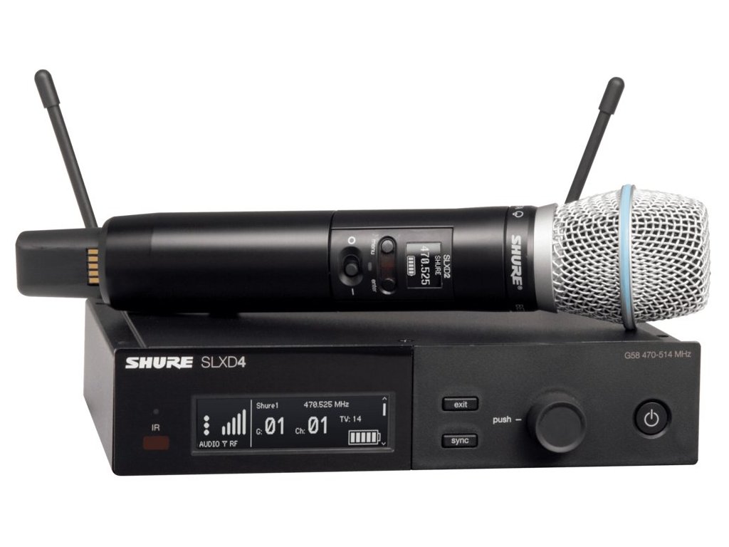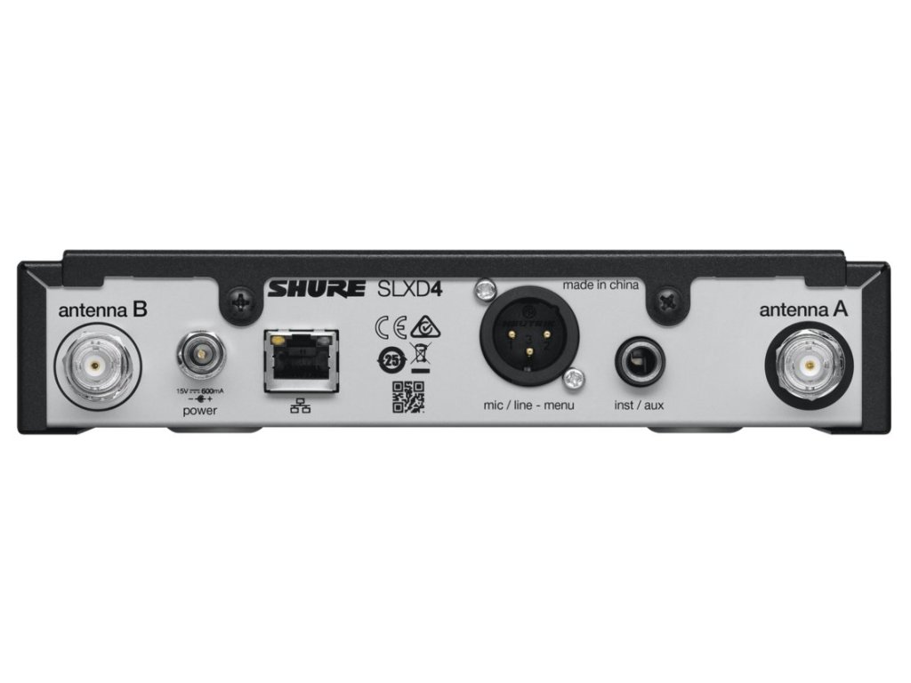 W zależności od trybu pracy można bez niepożądanych interferencji obsługiwać do 12 systemów jednocześnie. Szybkie uruchomienie zestawu ułatwia automatyczne parowanie IR odbiornika z nadajnikiem. Do przejrzystego sterowania przyczyniają się wysoko kontrastowe wyświetlacze LCD. Odbiornik SLXD4 jest wyposażony w złącza wyjściowe XLR i jack (TRS) umieszczone z tyłu. Port Ethernet służy do połączenia sieciowego z innymi kompatybilnymi komponentami. Nadajnik ręczny SLXD2 jest wyposażony w pojemnościową kapsułę mikrofonową Beta 87A, która zapewnia czysty, niezakłócony dźwięk w całym spektrum od 50 Hz do 20 kHz i jest w stanie pracować z ciśnieniem akustycznym do 140,5 dB. Jej charakterystyka częstotliwościowa jest zoptymalizowana do nagrywania wokalu solowego i wspomagającego. Dzięki systemowi wymiennych kapsuł, w razie potrzeby SLXD2 można wyposażyć w inny typ głowicy mikrofonowej (sprzedawane jako oddzielne akcesorium). Nadajnik jest w stanie pracować do 8 godzin na jednym ładowaniu. Do zasilania można użyć dwóch baterii AA lub akumulatora Shure SB903.