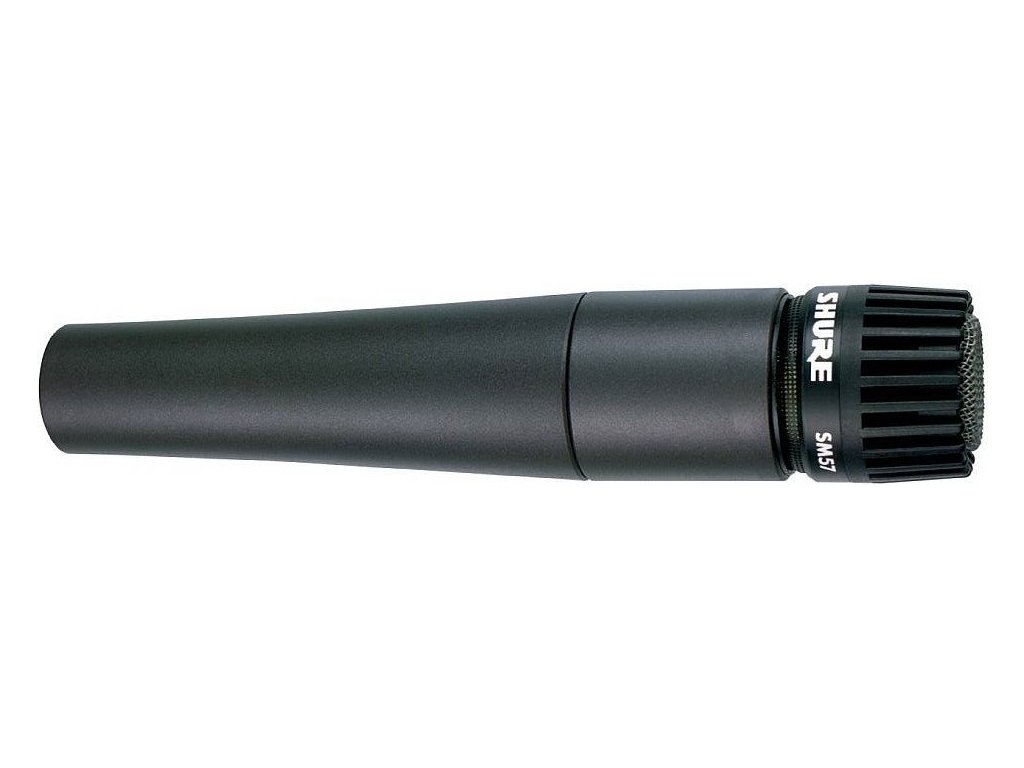 SHURE SM57 to uniwersalny mikrofon dynamiczny do instrumentów o naturalnym i czystym dźwięku. Znajduje zastosowanie przy nagłaśnianiu wzmacniaczy gitarowych, gitary akustycznej, instrumentów dętych i perkusyjnych. Kardioidalna charakterystyka kierunkowa umożliwia precyzyjne ustawienie źródła dźwięku, eliminuje niepożądane przesłuchy i minimalizuje zabarwienie sygnału podczas nagrywania poza osią. Dzięki wysokiej jakości wykonania i wyjątkowej odporności mechanicznej jest standardem nie tylko w nagraniach studyjnych, ale także w zastosowaniach scenicznych.