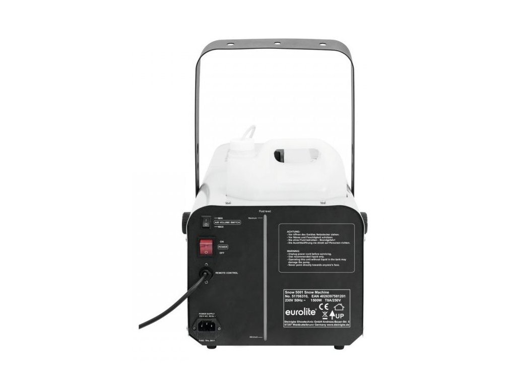 Za pomocą tego urządzenia możesz wytworzyć sztuczną pianę podobną do śniegu, urządzenie rozpyla sztuczny śnieg w całej przestrzeni, zasięg do ok. 6 m od urządzenia. Moc 1 000 W, kanister na 5 l płynu, uchwyt do przenoszenia i ucho do łatwego zawieszenia, pilot zdalnego sterowania. Sztuczny śnieg jest nieszkodliwy dla zdrowia.