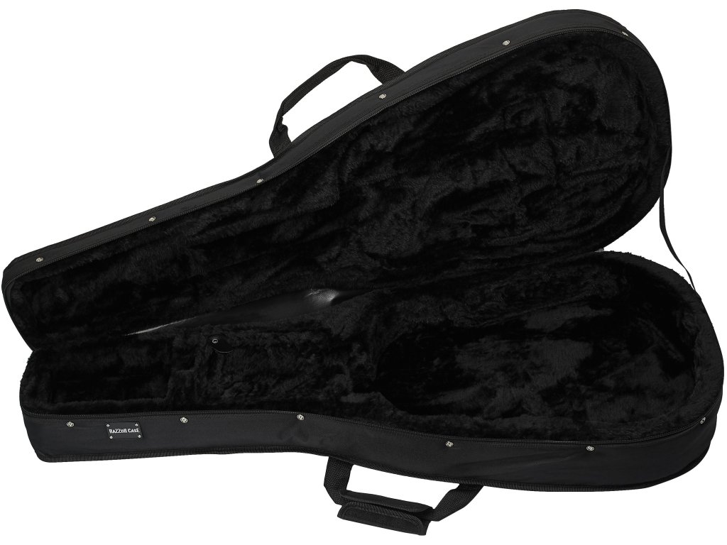 Bardzo mocny, ale lekki futerał na instrumenty od RaZZoR Case. W porównaniu do kufrów ABS lub drewnianych, ma niższą wagę i większą sztywność. Kufer jest wykonany z materiału, który jest odporny na rozerwanie i przebicie. Jeśli szukasz 100% ochrony dla swojego instrumentu za rozsądne pieniądze, produkty RaZZoR Case są oczywistym wyborem. Duża zewnętrzna kieszeń na akcesoria. Wewnętrzna kieszeń na akcesoria. 2x pasek na plecy, profilowane wnętrze EPS, odpowiednie do gitar westernowych i dreadnought