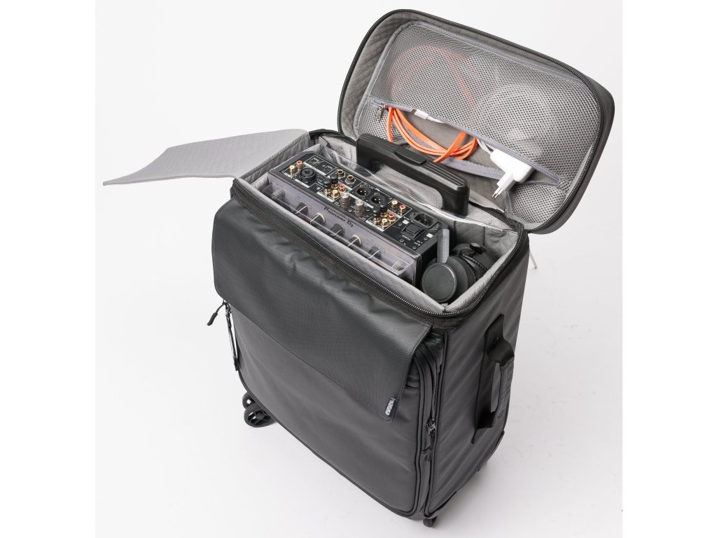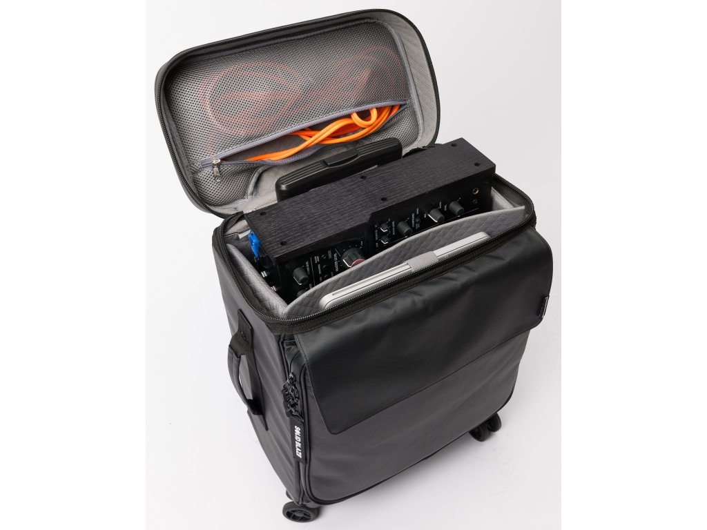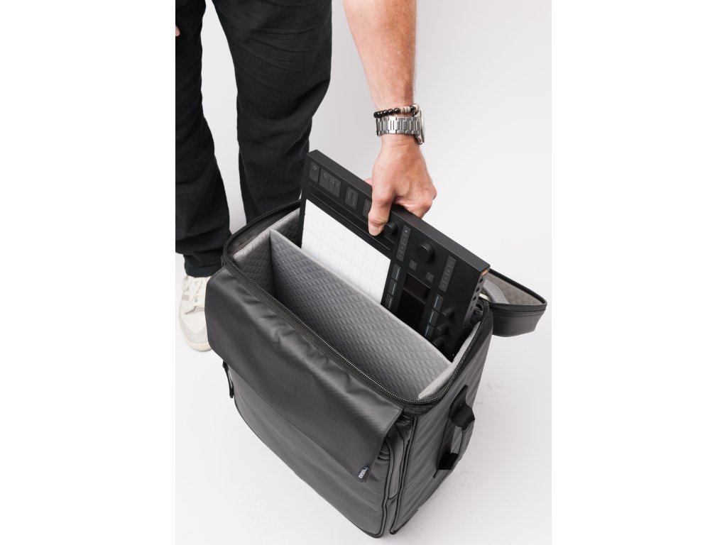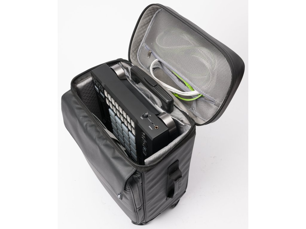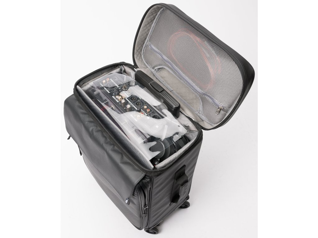 Praktyczna torba na kółkach z wysuwaną rączką, zaprojektowana dla maksymalnego komfortu. Torba SOLID BLAZE CABIN-TROLLEY umożliwia DJ-om i producentom muzycznym łatwe poruszanie się po lotniskach, dworcach i innych miejscach podczas podróży na występy. Łatwo i bezpiecznie przetransportujesz podstawowe wyposażenie, takie jak laptopy, miksery, samplery perkusyjne, kontrolery DAW i płyty 12".