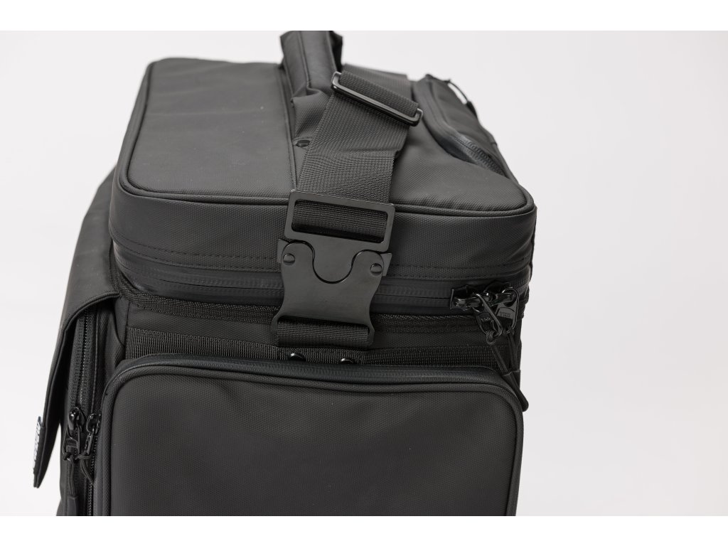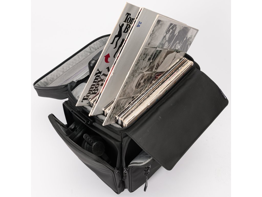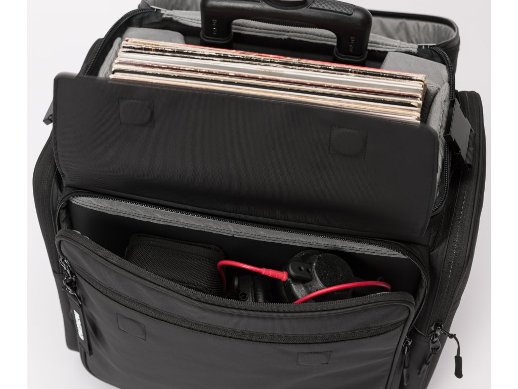 Przestronne boczne i przednie kieszenie zapewniają dodatkową przestrzeń do przechowywania słuchawek, wkładek i innych niezbędnych rzeczy, dzięki czemu ta torba jest idealnym towarzyszem każdego DJ-a w podróży.