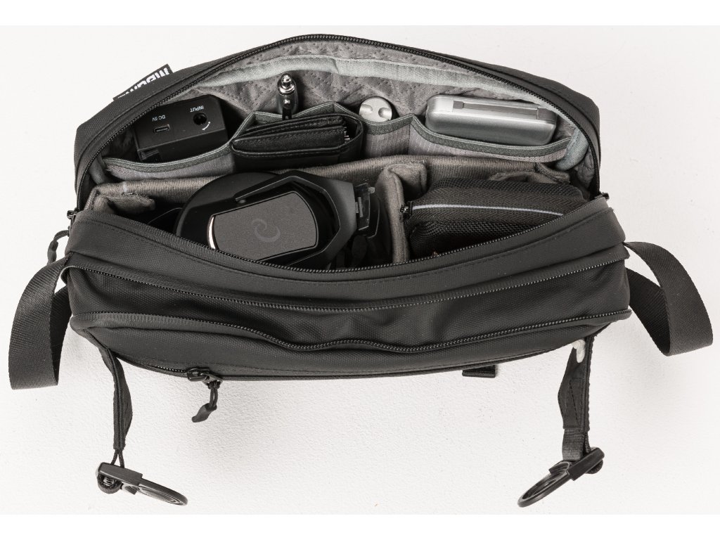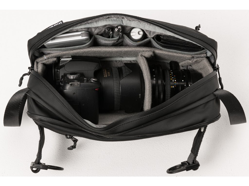 Ta praktyczna torba pomieści niezbędne rzeczy, takie jak słuchawki, dyski USB, powerbanki, aparaty fotograficzne i rzeczy osobiste, a to dzięki sprytnemu wewnętrznemu rozmieszczeniu z kilkoma przegródkami, dwiema zewnętrznymi kieszeniami dla szybkiego dostępu i wyściełanymi, odpinanymi przegródkami dla możliwości dostosowania ochrony. Rozszerzana komora główna zapewnia dodatkową przestrzeń w razie potrzeby, a ukryta kieszeń na butelkę z wodą i dwa regulowane paski umożliwiają przymocowanie statywu, kurtki lub innego sprzętu w podróży.