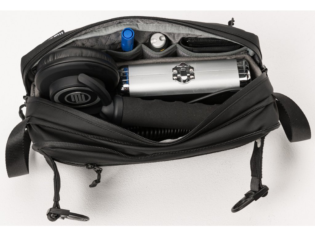 - Kompaktowa, rozszerzana torba crossbody dla DJ-ów, twórców i do codziennego użytku