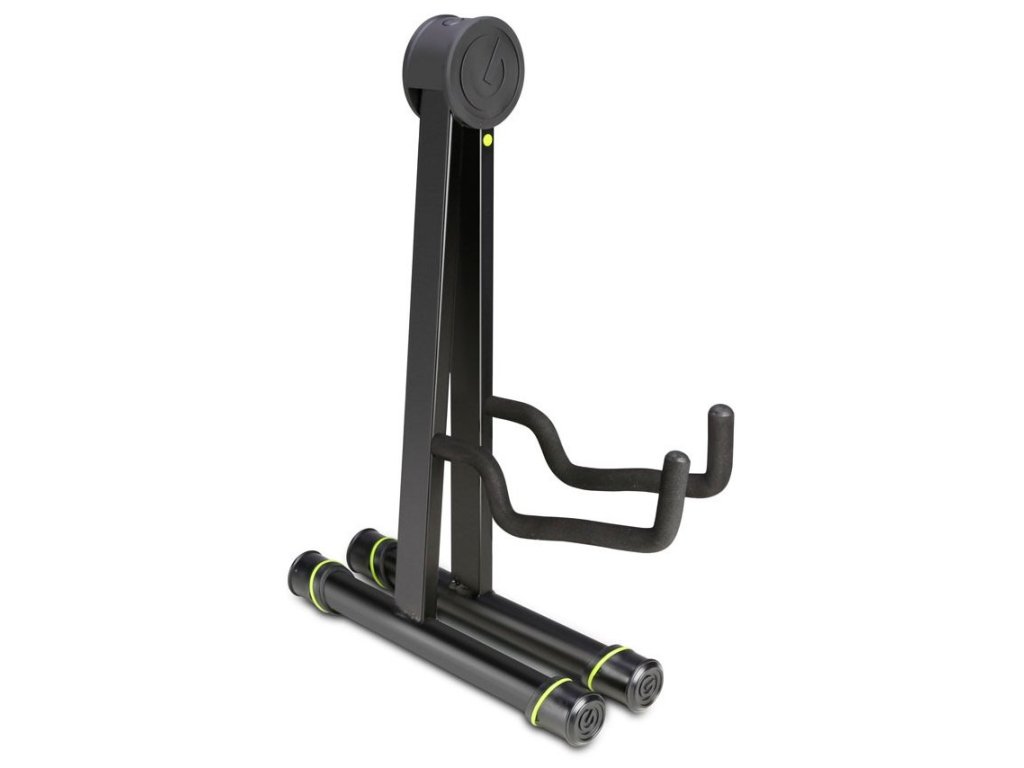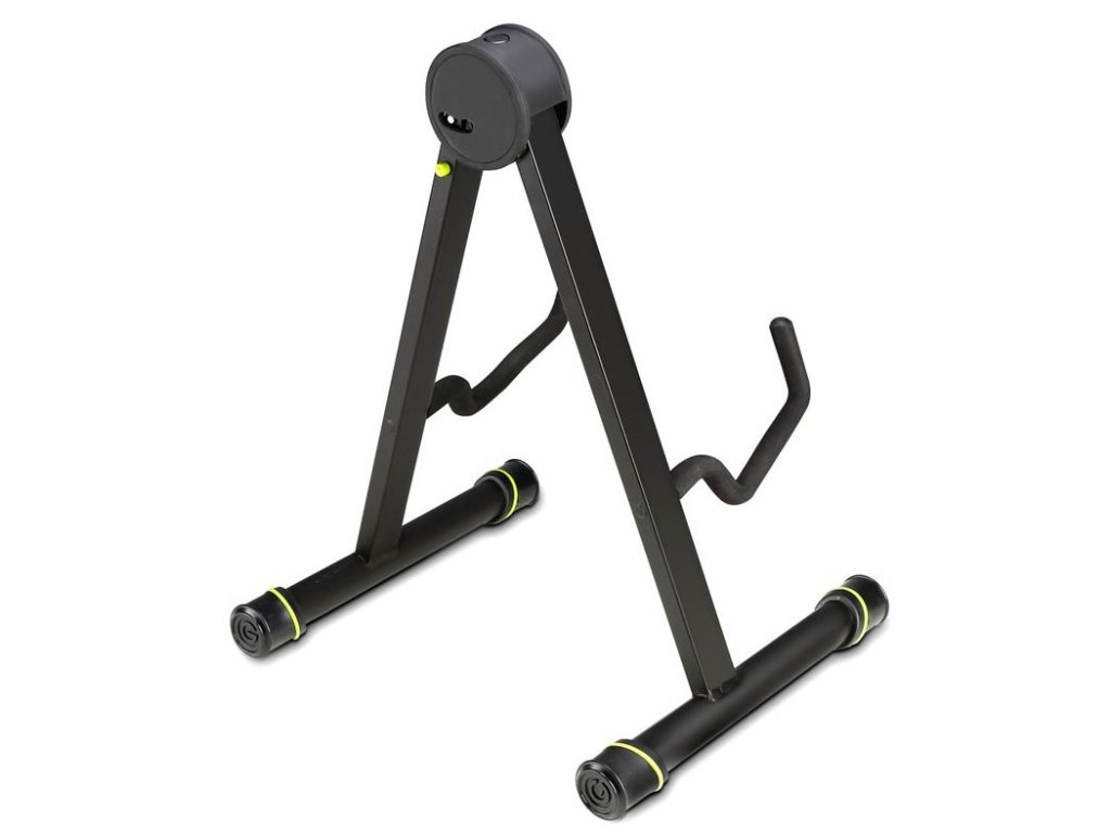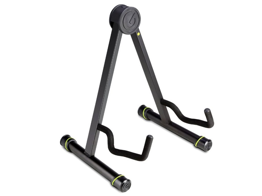 Ten statyw typu A nadaje się do gitar akustycznych i klasycznych, a dzięki swojej konstrukcji jest bardzo składny. Wykonany jest ze stali malowanej proszkowo i oczywiście posiada wyściełane uchwyty, które zapobiegają przesuwaniu się instrumentu, a jednocześnie chronią lakier.