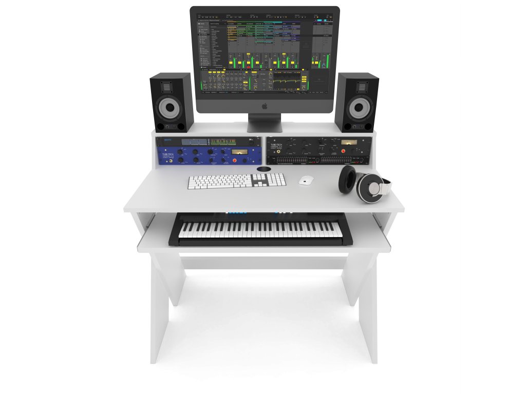 Sprytnie zaprojektowane stanowisko studyjne zapewnia miejsce na monitory studyjne na poziomie uszu i ekran na poziomie oczu. Bezpośrednio pod nim, w dwóch stojakach 3U, znajduje się miejsce na zewnętrzne urządzenia 19", dzięki czemu nic nie zakłóca procesu twórczego.