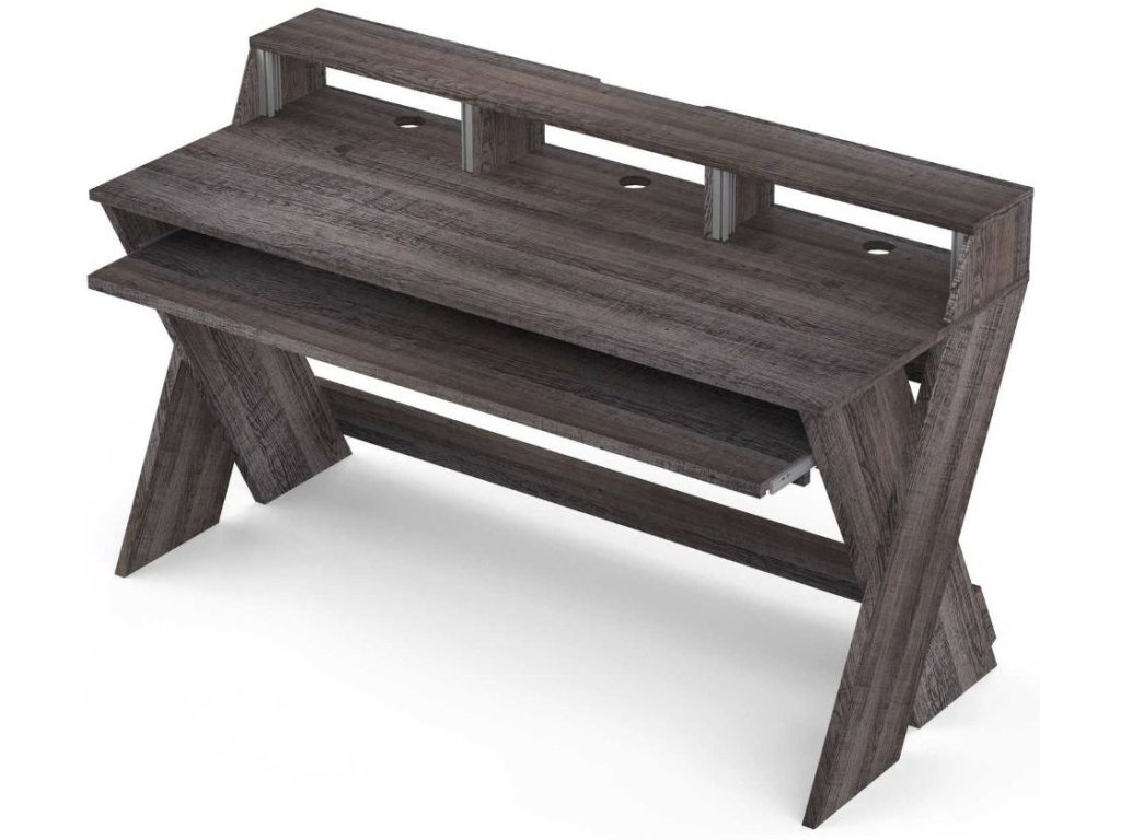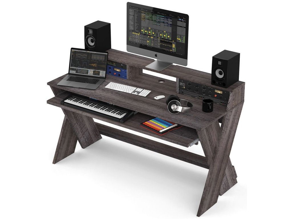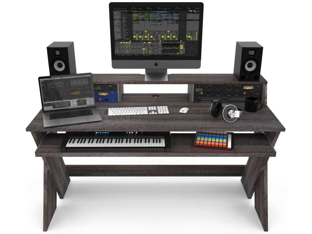 Stylowe drewniane biurko Sound Desk Pro idealnie nadaje się do studiów nagraniowych i wnętrz, w których producenci muzyczni, kompozytorzy i DJ-e potrzebują mieć wszystko pod ręką. Trzypoziomowe biurko zawiera wysuwaną powierzchnię na klawisze, klawiaturę i inne urządzenia. Główna płyta posiada rozległą powierzchnię, na której z łatwością można umieścić laptop, słuchawki i kubek z kawą. Podstawa pod monitor i głośniki umożliwia doskonały monitoring nagrań i maksymalny wgląd w poszczególne ścieżki. Dodatkowo podstawa zawiera dwie szuflady na urządzenia rackowe 19". Sound Desk Pro jest dostępny w trzech wariantach kolorystycznych, dzięki czemu idealnie pasuje do Twojego nowocześnie wyposażonego studia nagraniowego.