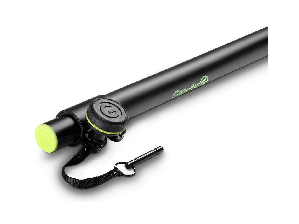 Stalowy drążek dystansowy z regulowaną wysokością i przyciskiem bezpieczeństwa.