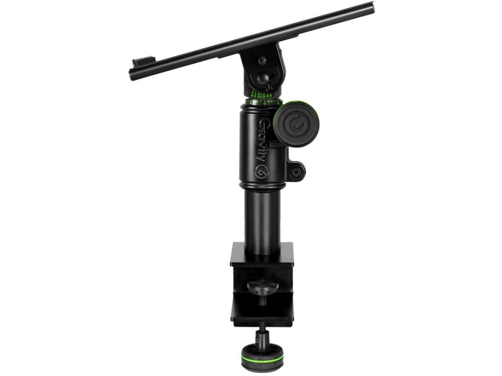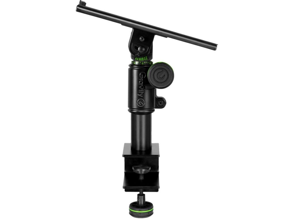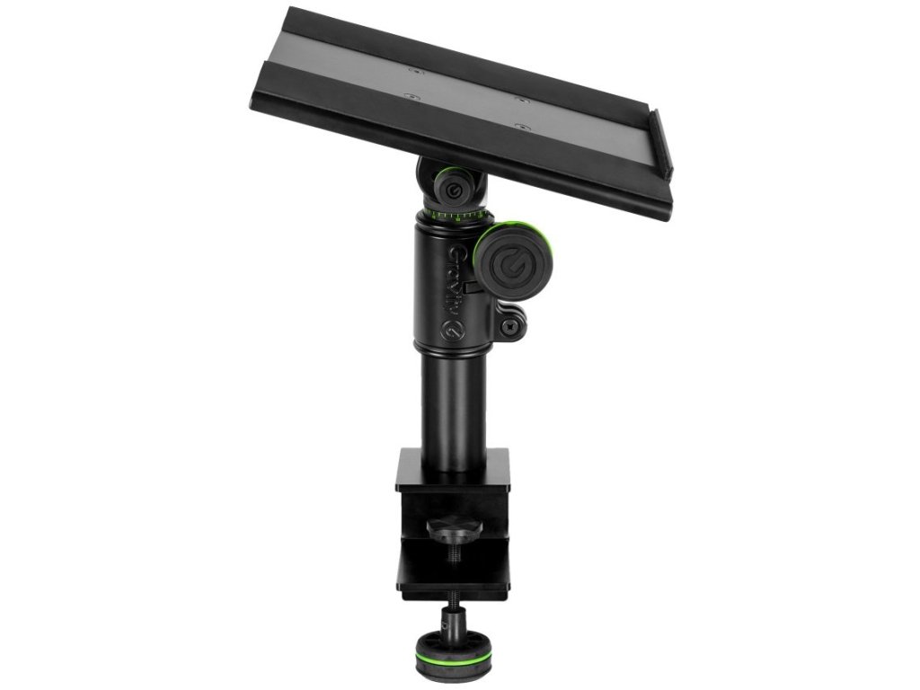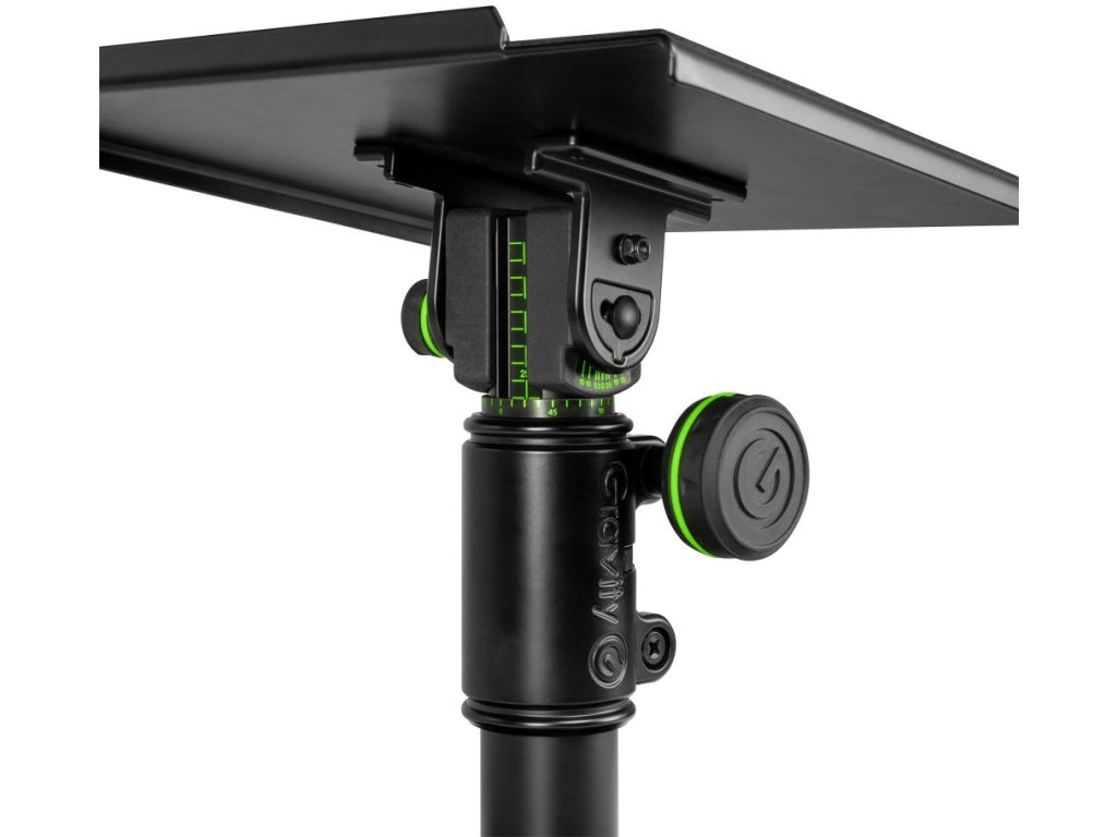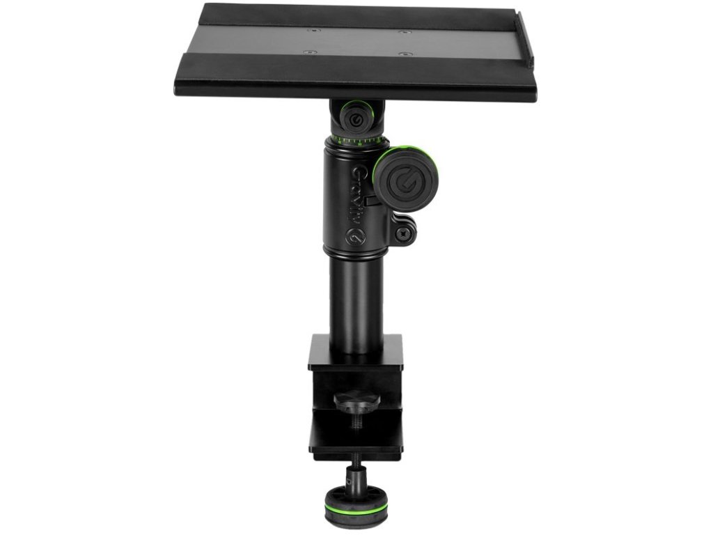 Firma Gravity rozwiązała wszystkie te problemy za pomocą modelu SP 3102 TM. Statyw do monitorów studyjnych jest wyposażony w zacisk stołowy do bezpiecznego i niezawodnego przymocowania konstrukcji do stołów z blatem o grubości nie większej niż 100 mm. Podobnie jak inne produkty Gravity, można go dokręcić za pomocą solidnego i praktycznego pokrętła. W przeciwieństwie do zwykłych stojaków stołowych, które wymagają dużej podstawy, aby się nie poruszyły, podstawa zacisku SP 3102 TM ma wymiary zaledwie 10 × 7 cm i nie zajmuje więcej miejsca niż standardowy uchwyt ekranu. Konstrukcja stojaków na monitory studyjne zapewnia, że nie wystają one zbytnio z biurka. Zapewnia to większą odległość między słuchaczem a monitorami, nawet jeśli biurka nie są zbyt głębokie, a także doskonałe umiejscowienie głośników, aby znaleźć "sweet spot" w pomieszczeniu.