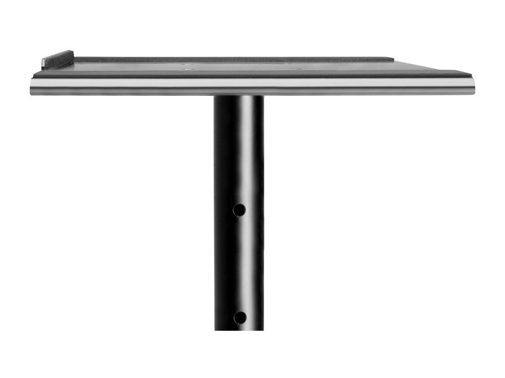 Aby uzyskać optymalne ustawienie głośników, statyw do monitorów studyjnych SP 3202 CS B można łatwo regulować na wysokość - od 860 mm do 1500 mm - a następnie zamocować na miejscu za pomocą śruby regulacyjnej i kołka zabezpieczającego. Część podtrzymująca głośniki ma wymiary 250 mm x 250 mm i jest pokryta materiałem EVA. Dzięki temu monitory studyjne są chronione i izolowane, co prowadzi do uzyskania najlepszego dźwięku.