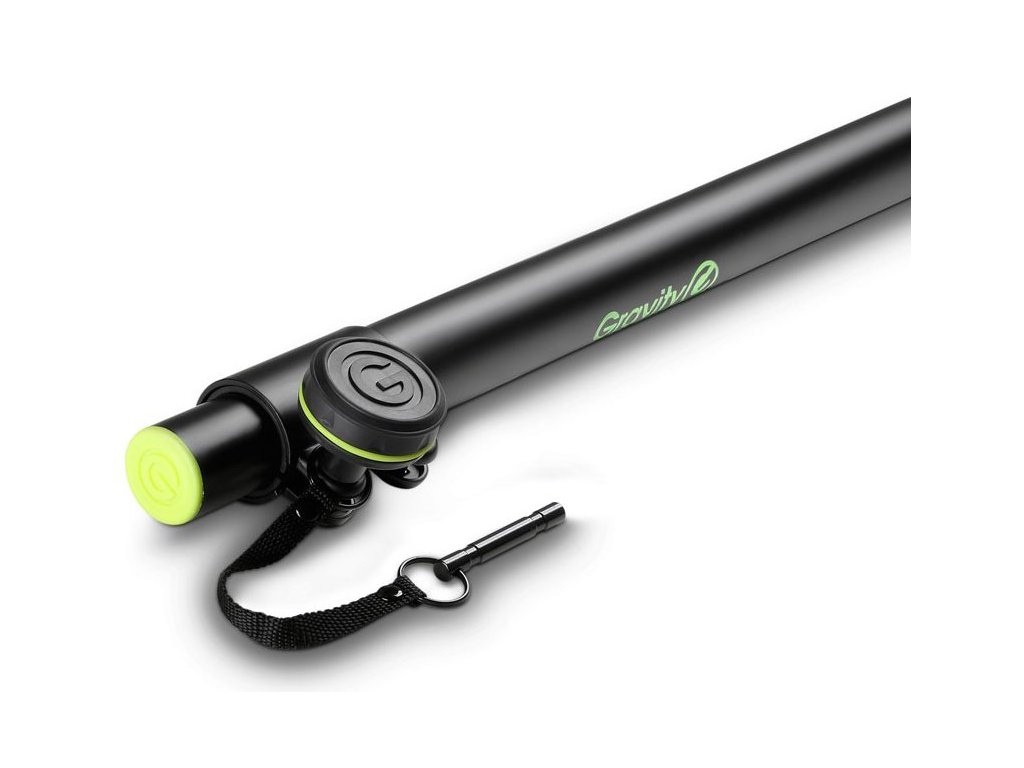Stalowy drążek dystansowy z regulowaną wysokością i przyciskiem bezpieczeństwa.