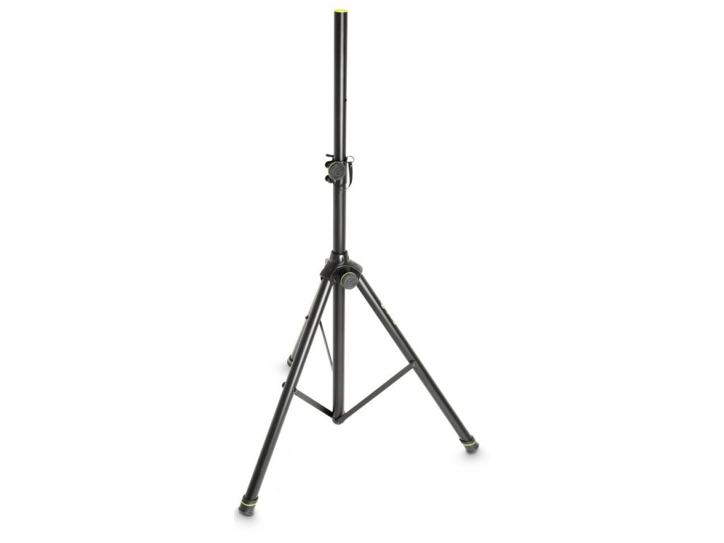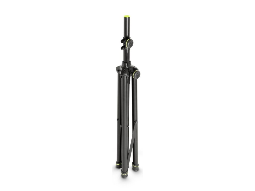 Klasyczny, trójnożny statyw na kolumnę głośnikową niemieckiej firmy Gravity jest wykonany z wytrzymałego materiału, zachowując jednocześnie bardzo niską wagę dla łatwego transportu. Podobnie jak w przypadku innych statywów tej firmy, oferuje ergonomicznie ukształtowane śruby pokryte gumą termoplastyczną, które umożliwiają bardzo szybką i wygodną regulację wymaganej wysokości. Śruba regulująca wysokość posiada zabezpieczenie, a mechanizm jest dodatkowo wykonany ze stali, dzięki czemu jest niemal niezniszczalny.