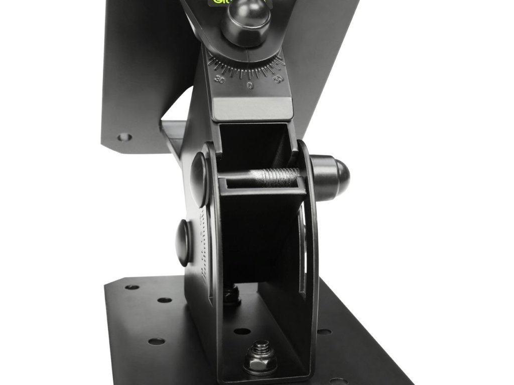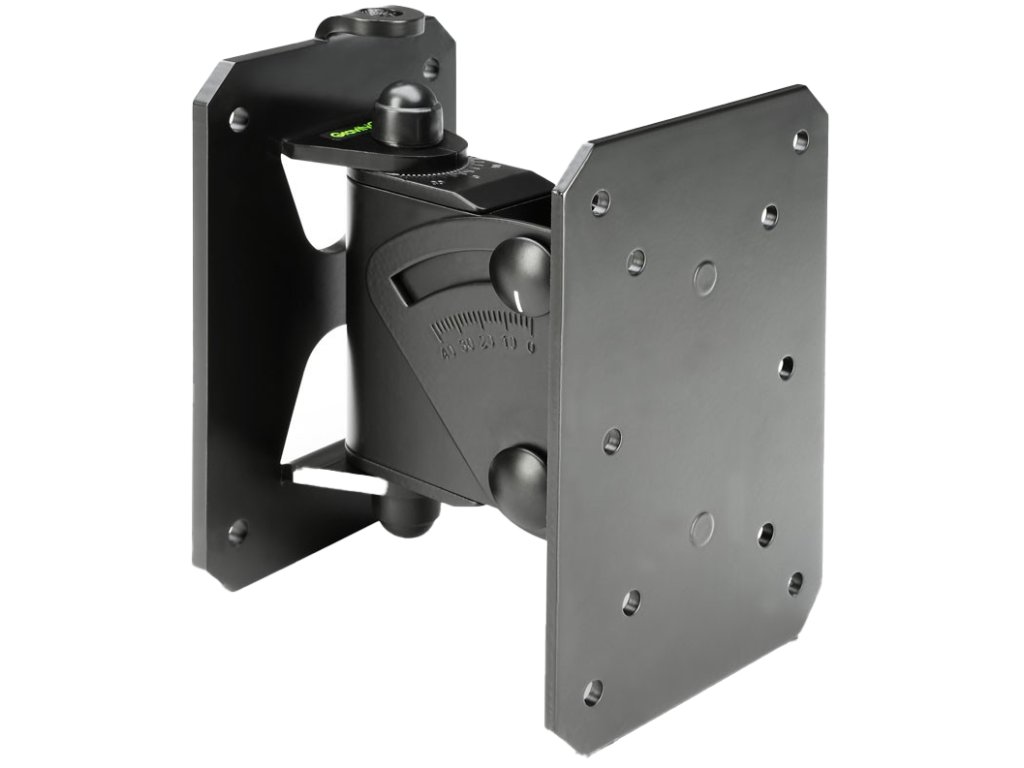 Ten uchwyt ścienny jest wykonany ze stali malowanej proszkowo i umożliwia poziomą i pionową regulację dla precyzyjnego ustawienia oraz obsługuje głośniki o wadze do 20 kg. Obrót na boki wynosi 160°, a nachylenie w dół jest płynnie regulowane do maksimum 40°. Wysoce wytrzymała płyta ścienna o grubości 5 mm jest wyposażona w oczko zabezpieczające na linę zgodnie z normą BGV C1. SP WMBS 20 jest dostarczany z uniwersalną płytą, którą mocuje się do głośnika w celu łatwego montażu na haku.