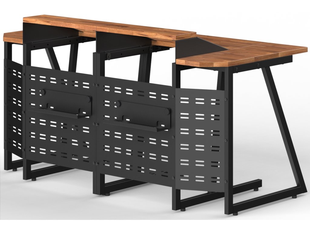 Wavebone Space Station 12U Rack Sets to najwyższej klasy stół studyjny oparty na modularnej konstrukcji, której poszczególne komponenty umożliwiają kilka wariantów montażu Twojego miejsca pracy. System Modular Workstation dysponuje następującymi częściami > Main Desk D80 to główna część o szerokości 80 cm > Main Desk D60 to główna część o szerokości 60 cm > Rack Desk to część o szerokości 53,5 cm z 6U pozycjami rackowymi i półką na wysokości 87,7 cm do umieszczenia monitora LCD > Side Desk to element krawędziowy o szerokości 27,3 cm ze ściętym blatem i tylnym panelem > jednolita, stała wysokość blatu 76 cm > tylny perforowany panel każdej części umożliwia instalację organizerów kablowych (opcjonalne akcesorium) 12U Rack Sets to modularny stół studyjny przeznaczony do profesjonalnych studiów nagraniowych, masteringowych i filmowych. Ten zestaw składa się z 2x Rack Desk (łącznie 12 U) 2x Side Desk