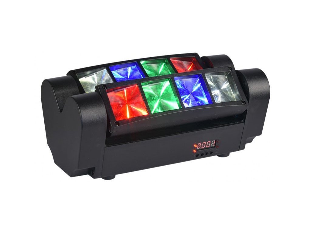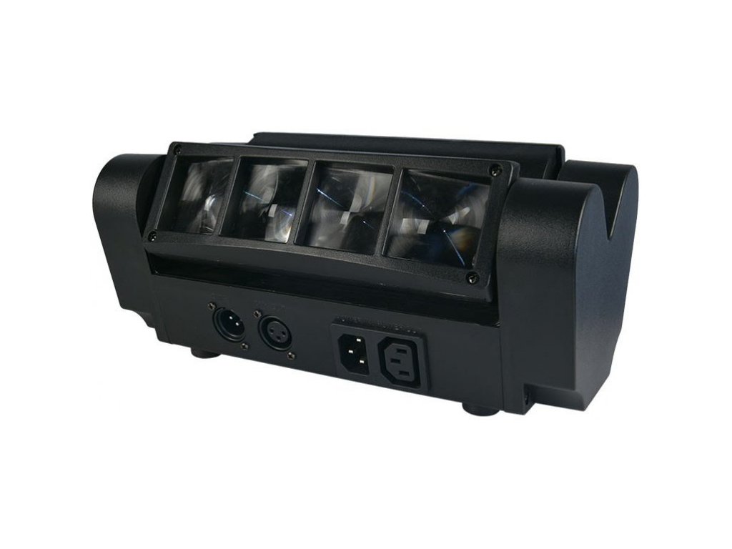 LIGHT4ME SPIDER MKII TURBO to niezwykle szybki efekt świetlny oparty na technologii LED. Urządzenie wykorzystuje osiem 3W LED CREE - dwie czerwone, zielone, niebieskie i białe (RGBW). Optyka jest umieszczona na dwóch pasach, które mogą poruszać się niezależnie. Osiem wbudowanych soczewek emituje bardzo silne wiązki promieni, które dosłownie przecinają przestrzeń światłem, co zapewnia wysoki stopień dynamiki. Wisienką na torcie jest możliwość stroboskopu i wbudowany ściemniacz. Reflektor jest sterowany wbudowanym panelem z cyfrowym wyświetlaczem. Możemy wybierać między trybem automatycznym, trybem kompatybilnym z dźwiękiem (wbudowany mikrofon) lub zarządzaniem efektami LED za pomocą standardowego protokołu DMX (wejścia / wyjścia). Solidna konstrukcja, uchwyt, który umożliwia instalację oświetlenia na statywie lub na rampie, łatwość użycia i wysoka wydajność źródeł światła to cechy, dzięki którym Light4Me Spider jest idealnym oświetleniem sceny i dyskoteki, które wyróżnia się jakością i ceną w porównaniu z podobnymi urządzeniami tego typu. Można by rzec, że to już wszystko, ale Light4Me Spider jest dostępny również w formie ruchomej głowy - zobacz LIGHT4ME SPIDER HEAD!