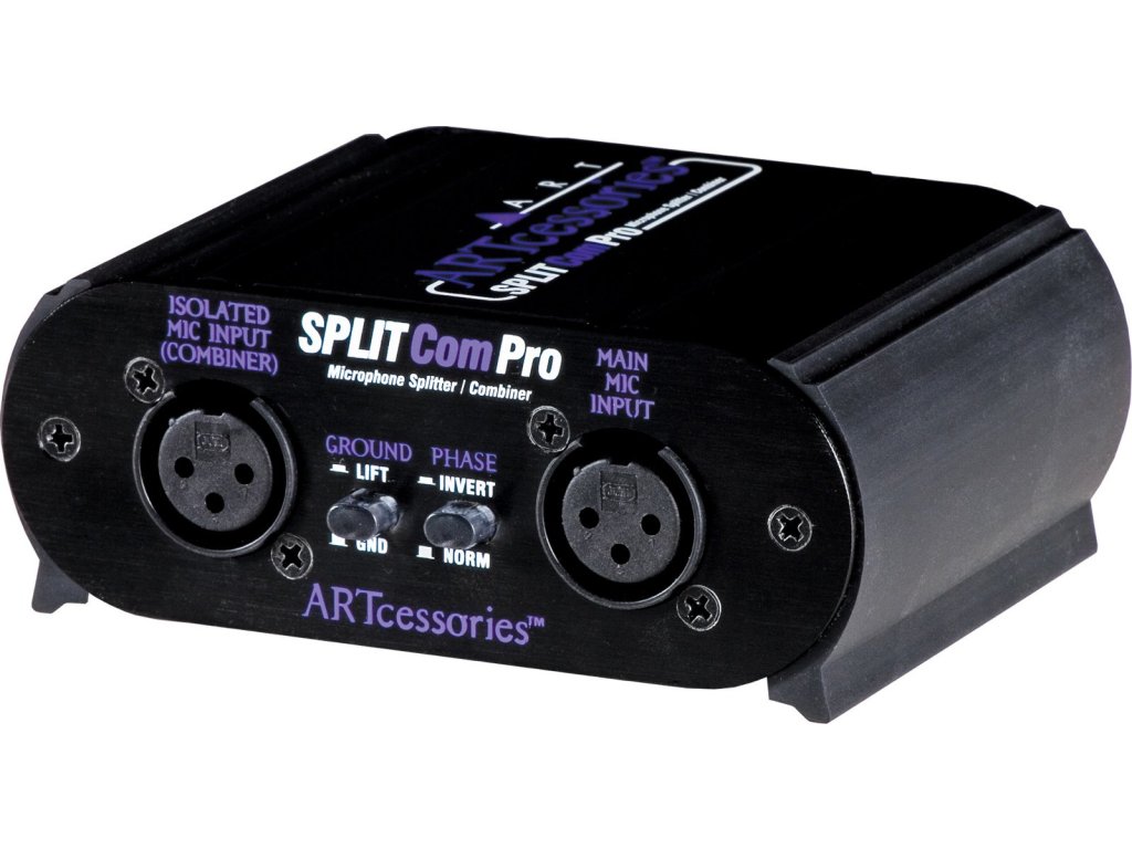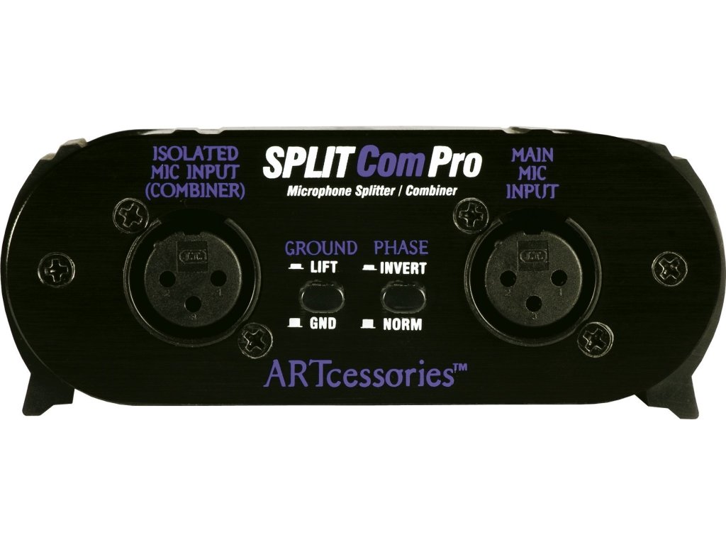 ART SPLITCom Pro to rozdzielacz/sumator niskoimpedancyjnego sygnału mikrofonowego. Poszczególne gałęzie są oddzielone transformatorem, a SPLITCom Pro jest wyposażony w ground lift i odwrócenie fazy. Model ten charakteryzuje się wysoką transparentnością – niskimi zniekształceniami i dużym zakresem częstotliwości.