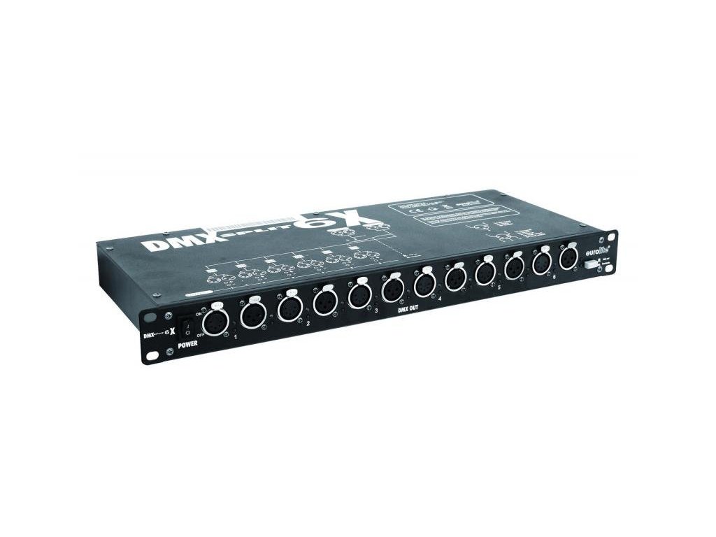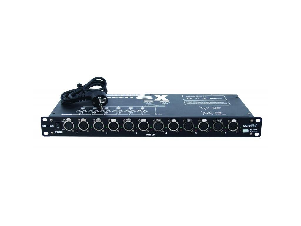 Rozdzielacz sygnału DMX z sześcioma wyjściami, odpowiedni do dyskotek i zastosowań touringowych, eliminuje zakłócenia w linii DMX. Izoluje urządzenia DMX w poszczególnych gałęziach, wskaźniki LED stanu i obecności sygnału DMX, zintegrowany rezystor 120 omów do zakończenia linii DMX. Rozmiar 19" odpowiedni do montażu w szafie rack.