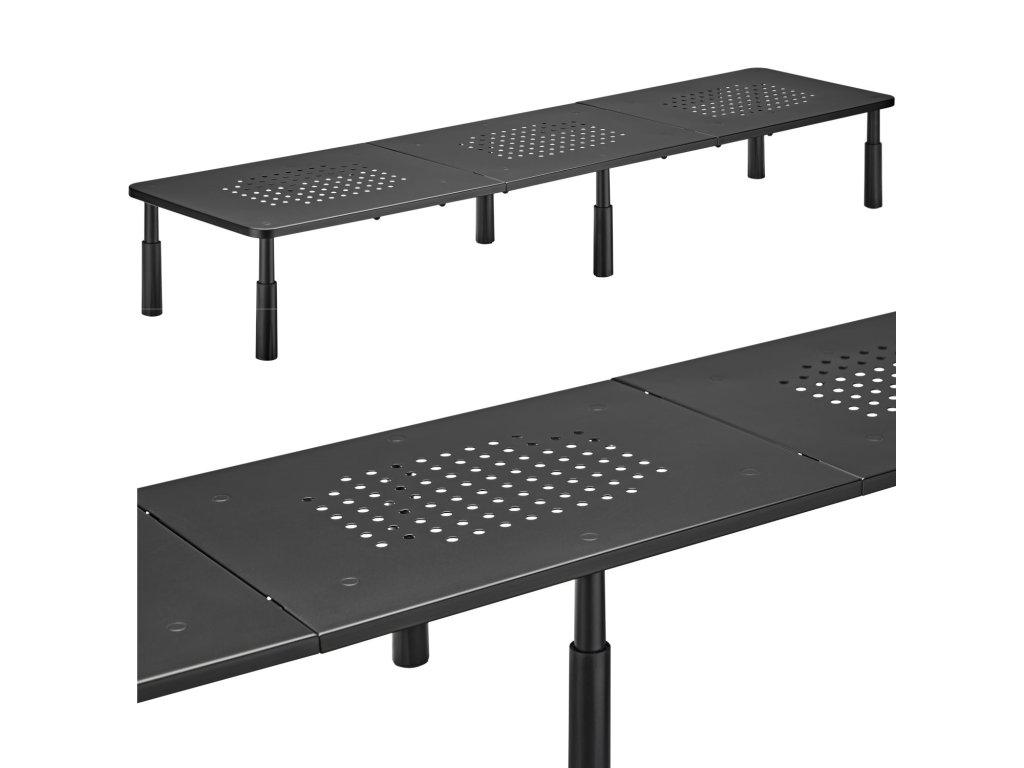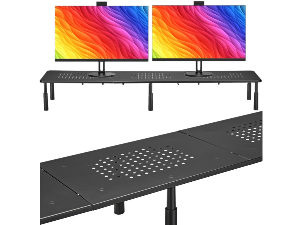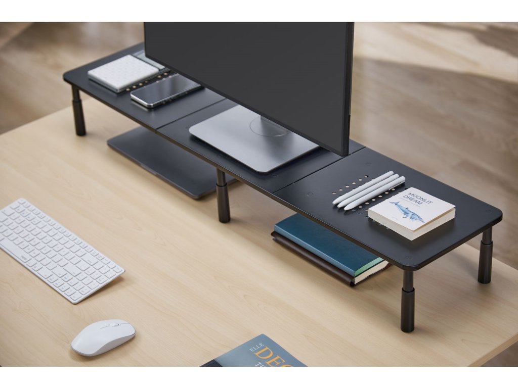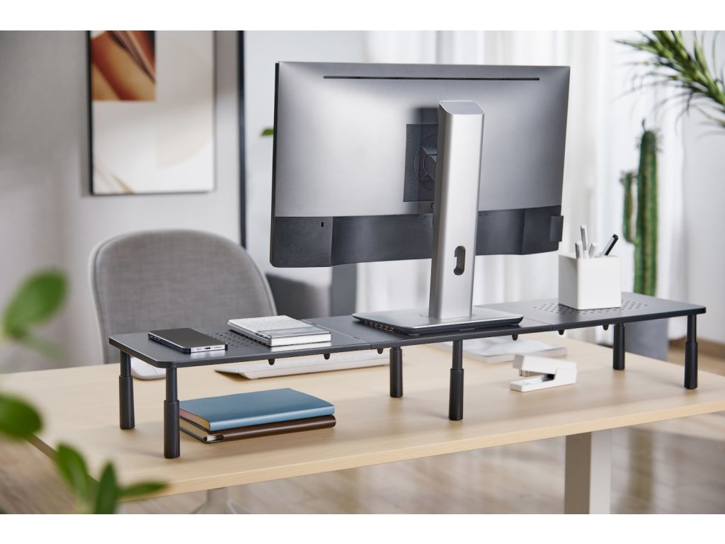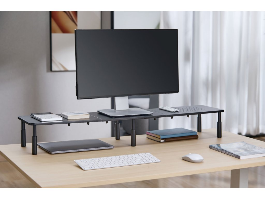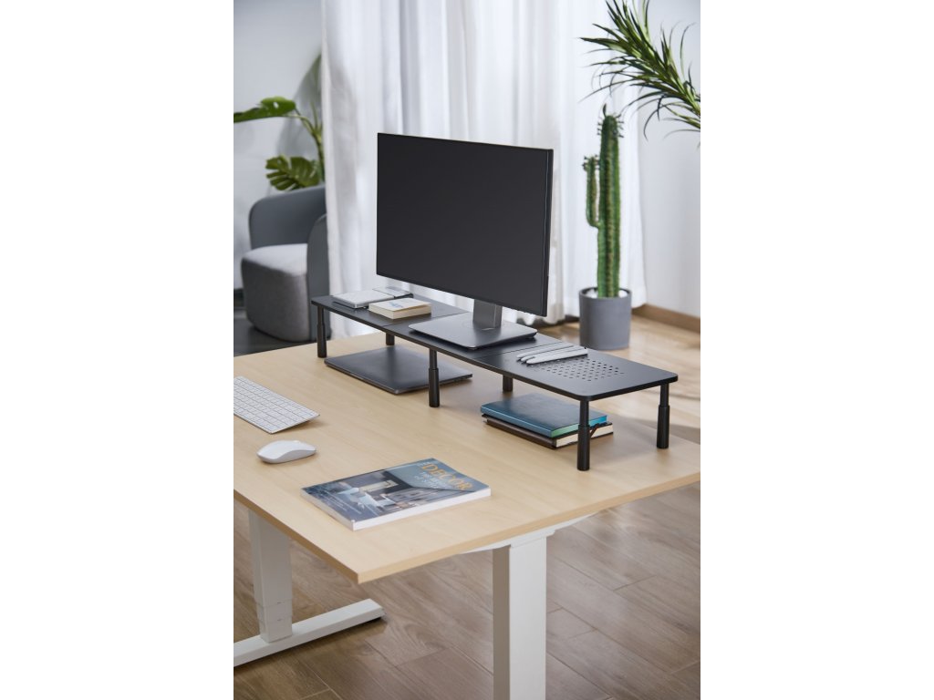 Solidna stalowa konstrukcja gwarantuje stabilność nawet przy większym obciążeniu, niezależnie od tego, czy umieścisz na podstawie monitory, drukarkę lub inne akcesoria. Elegancki minimalistyczny design dodatkowo świetnie pasuje do każdego wnętrza i nada Twojemu biurku nowoczesny wygląd i porządek.