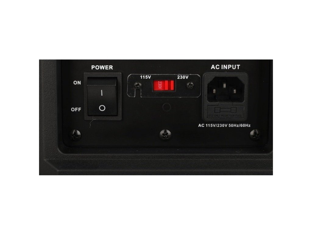 - Wskaźniki LED: Power, active signal, signal distortion, DSP preset