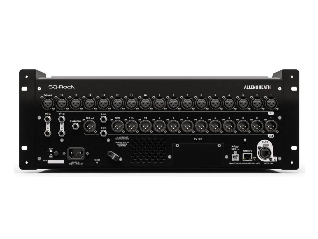 Sercem SQ-Racka jest rdzeń XCVI z częstotliwością próbkowania 96 kHz, który jest identyczny z innymi modelami z serii SQ i oferuje wszystkie te same funkcje i elastyczność, w tym ultra niską latencję (<0,7 ms), inteligentny port SLink do użytku z ekspanderami serii Allen & Heath ‘Everything I/O’, port I/O do integracji Dante/Waves/MADI, 48 kanałów wejściowych, 36 szyn wyjściowych, przetwarzanie kanałów DEEP i 8 modułów FX RackExtra.