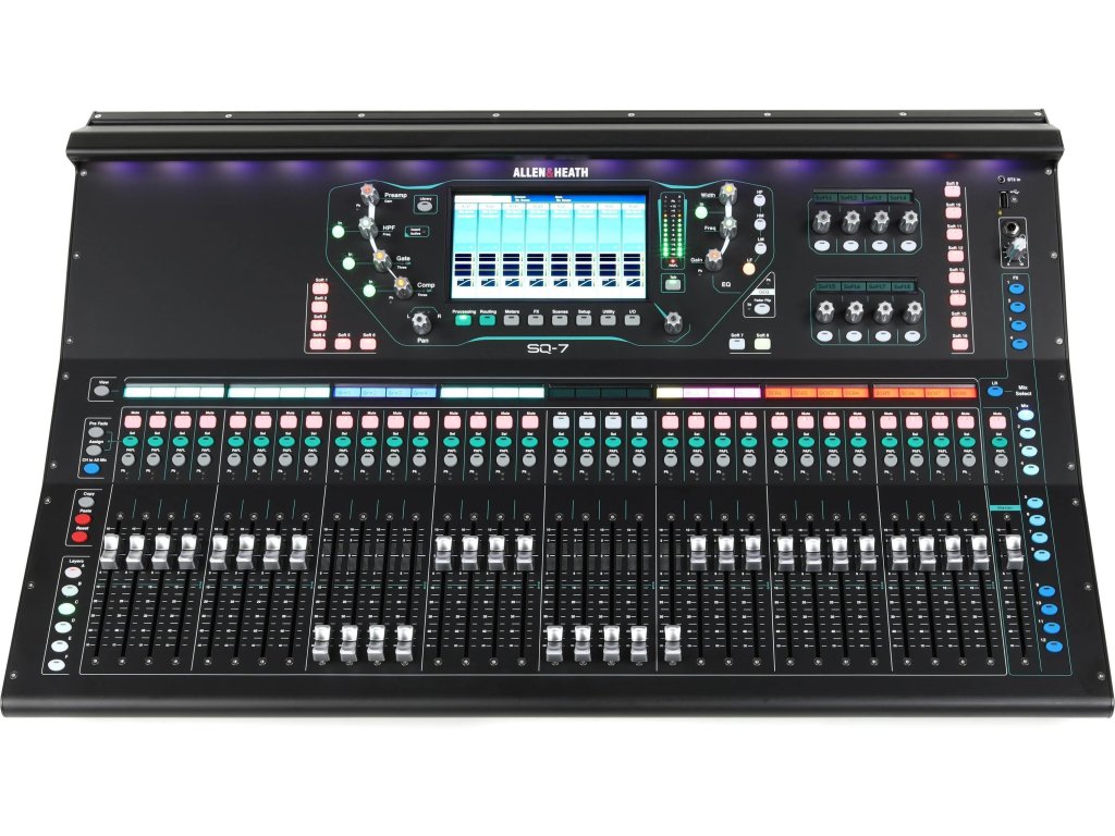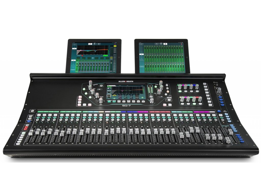 SQ7 to flagowy model całej serii SQ, wyposażony w 32 suwaki, 32 przedwzmacniacze mikrofonowe i 8 dowolnie przypisywalnych enkoderów obrotowych Soft rotaries. Firma Allen&Heath dynamicznie reaguje na rosnące wymagania dotyczące nagłośnienia na żywo, imprez firmowych, instalacji stałych i innych produkcji.