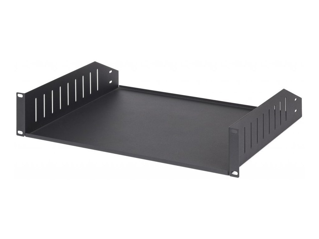 Uniwersalna półka rackowa do urządzeń bez uchwytów rackowych o wysokości 2U.