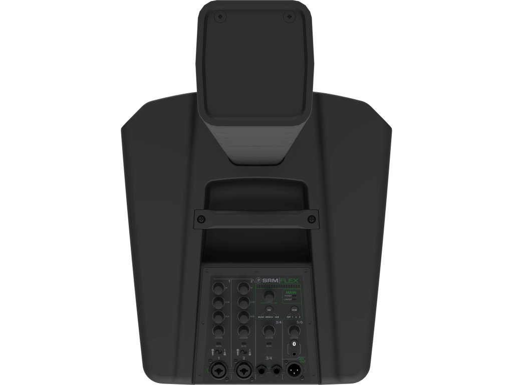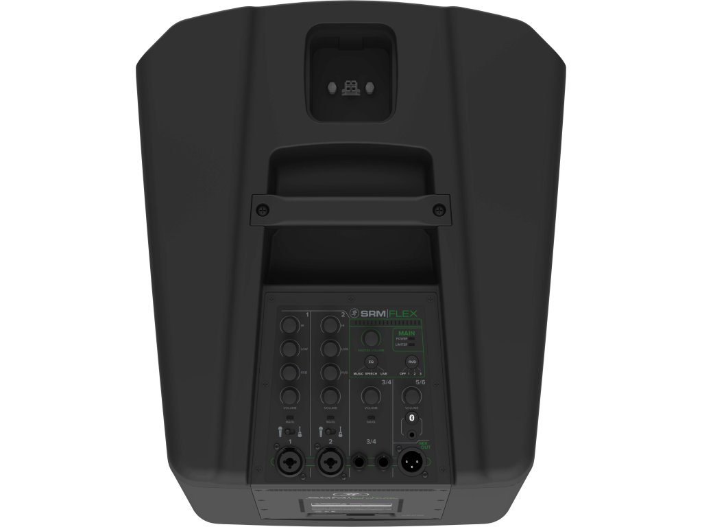 SRM-Flex to mobilny system, który w sobie kryje sześciokanałowy mikser, oferujący dwupasmowy equalizer, trzy efekty reverb, regulator głośności dla każdego kanału i Master volume dla wszystkich kanałów. Dwa kanały oferują wejście combo XLR/Jack z wysokiej jakości przedwzmacniaczem mikrofonowym i zasilaniem phantom, posiadają również wejście instrumentalne, dzięki któremu nie trzeba używać DI boxu. Na trzecim i czwartym kanale znajduje się wejście stereo dla instrumentów klawiszowych i innych urządzeń muzycznych. Dwa ostatnie wejścia obsługują bezprzewodowe połączenie Bluetooth, można również skorzystać z wejścia AUX dla starszych odtwarzaczy MP3, tabletów lub laptopów bez technologii Bluetooth. Na tym samym panelu znajduje się również wyjście XLR Thru do podłączenia kolejnego boxu lub wysłania sygnału bezpośrednio do PA.