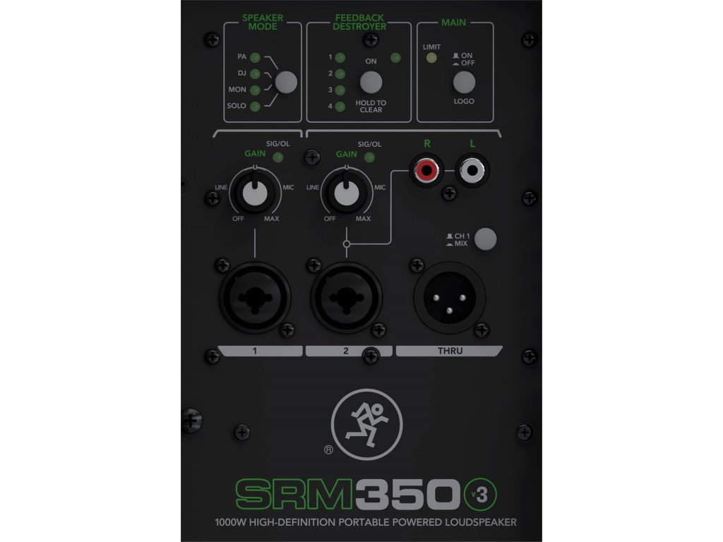 SRM350-V3 to aktywna kolumna, która dzięki systemowi Fast Recovery jest w stanie dostarczyć moc RMS do 500 W, z czego 400 W przypada na 10-calowy woofer, a 100 W na 1,4-calowy driver HF. Dzięki inteligentnej zwrotnicy Linkwitz-Riley dostrojonej do 3000 Hz sygnał w obu głośnikach jest zsynchronizowany w taki sposób, aby osiągnąć optymalną projekcję dźwięku.