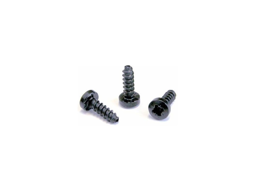 Czarna śruba samogwintująca PLASTITE®*, trójkątny układ 2,9 x 1,05, długość 8 mm, z płaską główką.