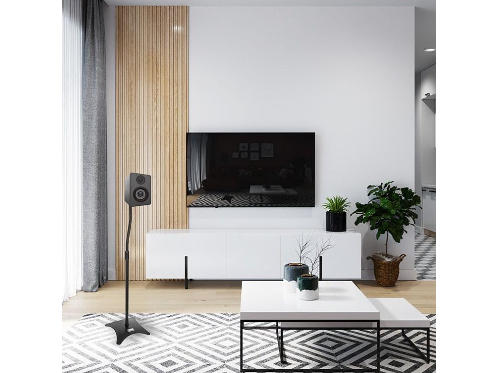Jeśli szukasz stabilnych statywów pod głośniki o wadze do 4,5 kg z regulowaną wysokością, DNA SS 1 SET jest doskonałym wyborem. Dodatkową zaletą tego zestawu jest zintegrowany system prowadzenia kabli, który umożliwia poprowadzenie kabli przez rurę statywu, co wygląda estetycznie.