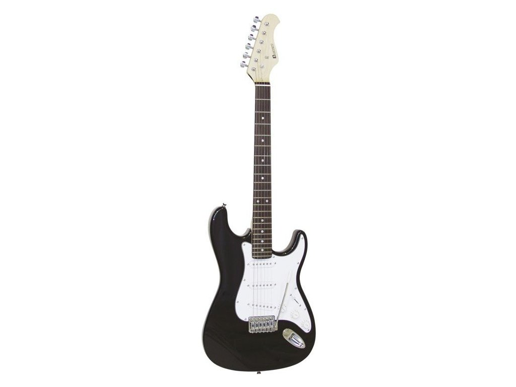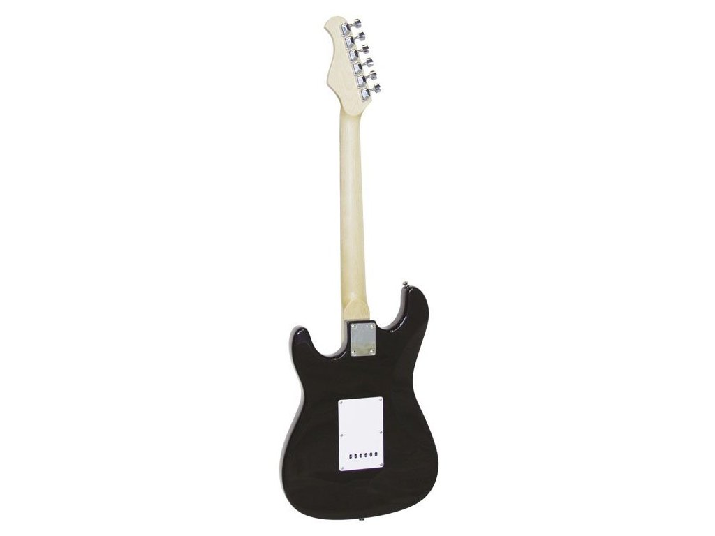 Gitara elektryczna typu Strat. Korpus lipowy, gryf klonowy, menzura 648 mm, podstrunnica palisandrowa, 22 progi, przetworniki 3 x Single Coils (jednocewkowe), tremolo typu Strat, 5-pozycyjny przełącznik, sterowanie: 1 x Volume, 2 x Tone, mechanika die-cast, chromowany osprzęt. Kolor: czarny.