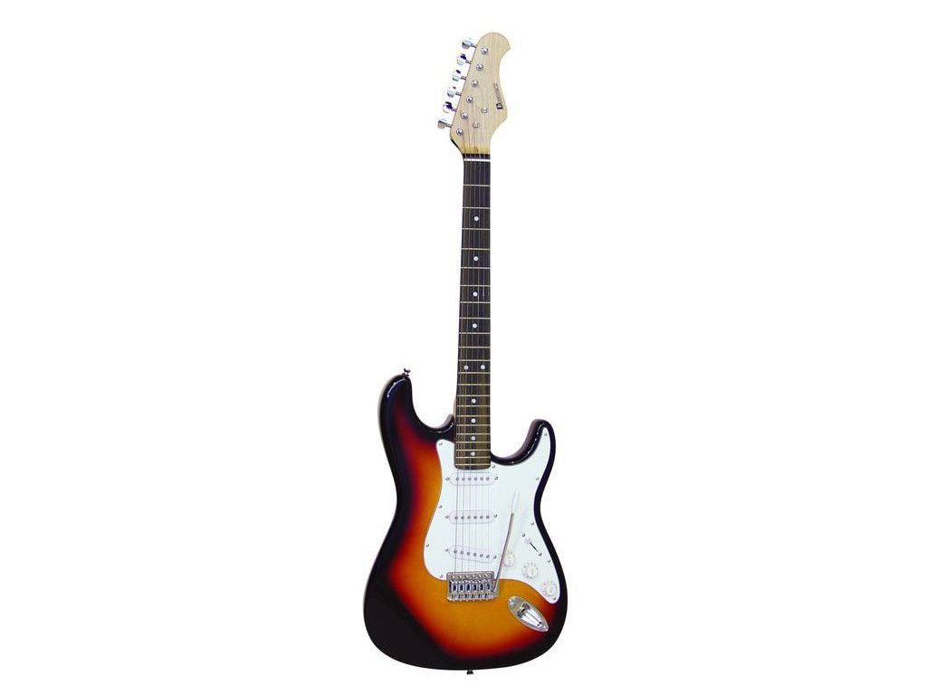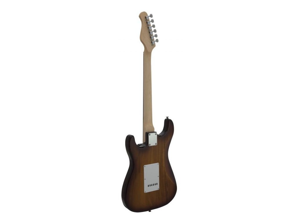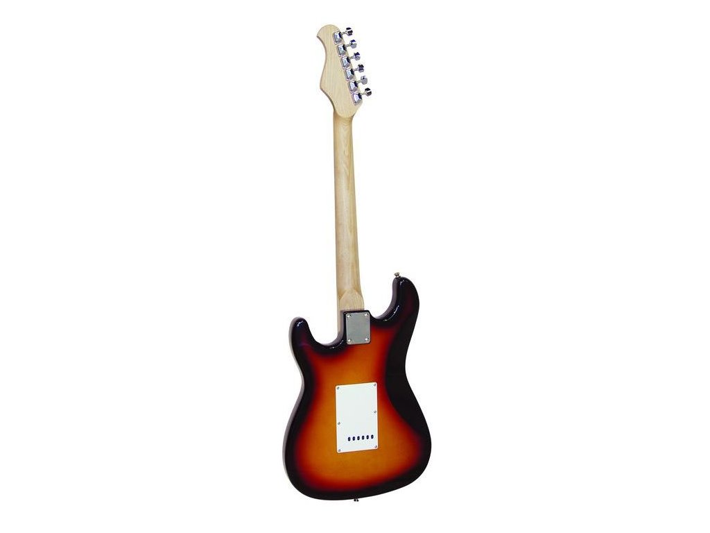 Gitara elektryczna typu Strat. Korpus lipowy, gryf klonowy, menzura 648 mm, podstrunnica palisandrowa, 22 progi, przetworniki 3 x Single Coils (jednocewkowe), tremolo typu Strat, 5-pozycyjny przełącznik, sterowanie: 1 x Volume, 2 x Tone, mechanika die-cast, chromowany osprzęt. Kolor sunburst.