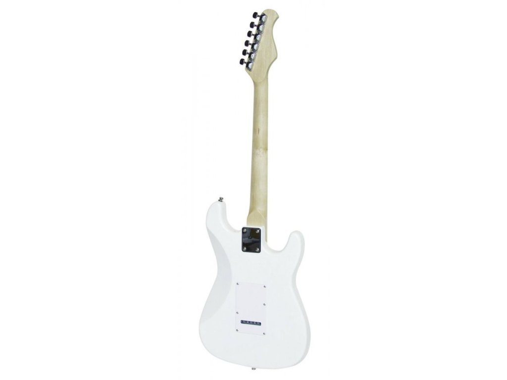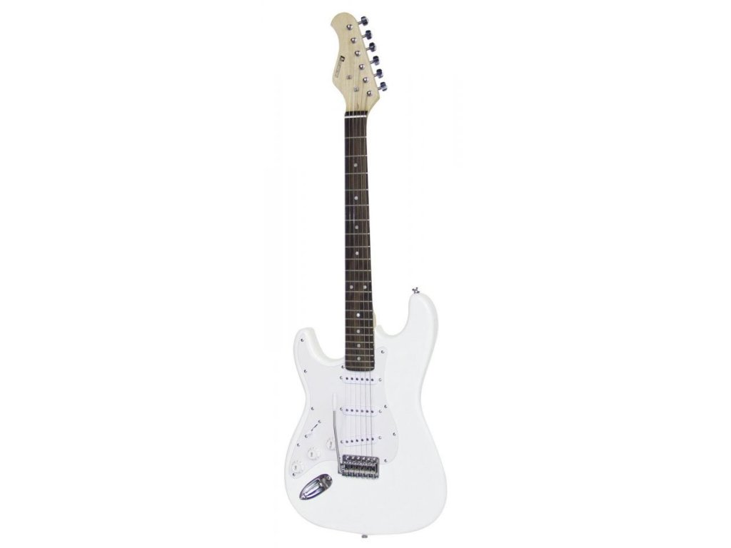 Gitara elektryczna typu Strat. Korpus lipowy, gryf klonowy, menzura 648 mm, podstrunnica palisandrowa, 22 progi, przetworniki 3 x Single Coils (jednocewkowe), tremolo typu Strat, 5-pozycyjny przełącznik, sterowanie: 1 x Volume, 2 x Tone, mechanika die-cast, chromowany osprzęt. Kolor: LH biały.