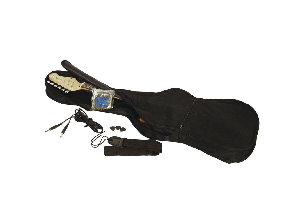 Gitara elektryczna typu Strat. Korpus z lipy, gryf z klonu, podstrunnica z palisandru, 22 progi, menzura 648 mm, przetworniki 2x SC + 1x HB, sterowanie 1x Volume, 2x Tone, 5-pozycyjny przełącznik, tremolo typu Strat, mechanika die-cast. Kolor czarny.