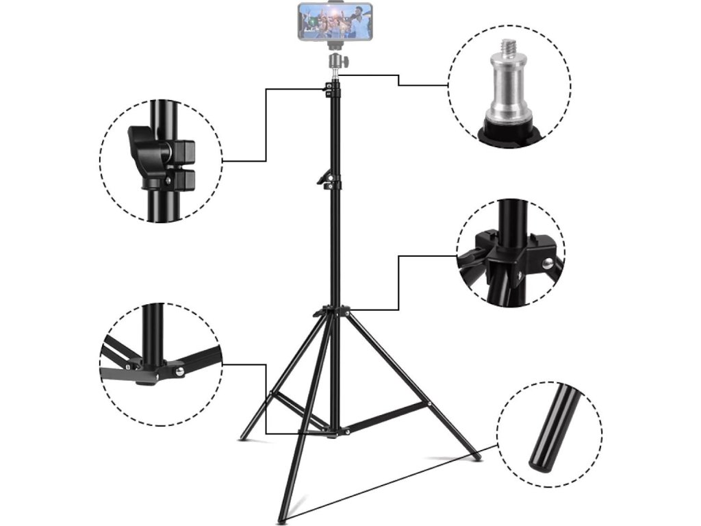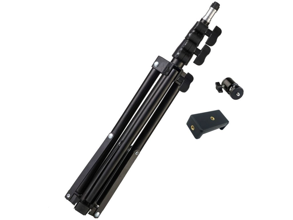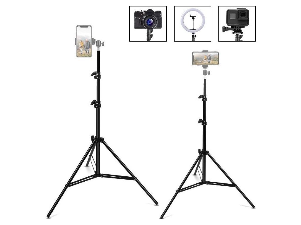 Uniwersalny statyw trójnożny odpowiedni do smartfonów i kamer, wyposażony w regulowaną wysokość, doskonałe właściwości antywibracyjne i rozkładaną konstrukcję do kompaktowych rozmiarów dla łatwego transportu. W zestawie znajduje się uchwyt na smartfon, aparat fotograficzny i pokrowiec transportowy.