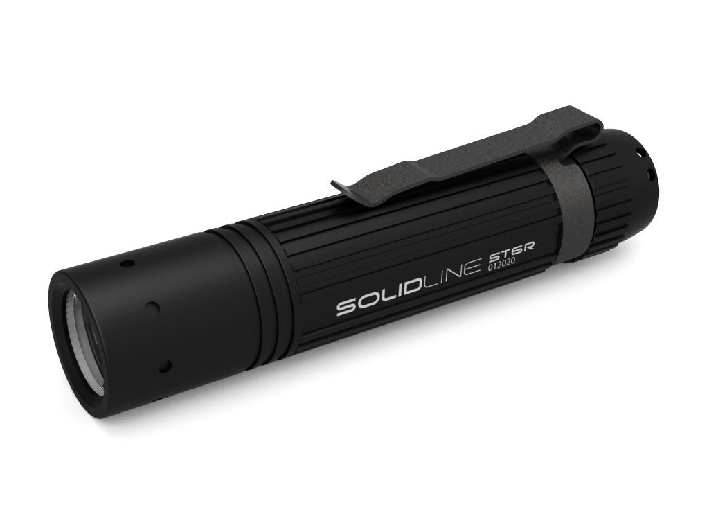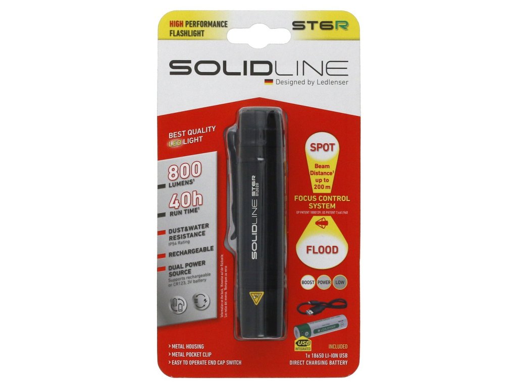 Kompaktowa latarka ręczna o doskonałej wydajności świetlnej do 900 lm. W solidnej aluminiowej obudowie kryją się nowoczesne technologie. Połączenie soczewki i reflektora stworzyło unikalną technologię Advanced Focus System, która nie ma sobie równych na świecie. W ten sposób powstała soczewka reflektorowa umożliwiająca skupienie strumienia światła z płynnym przejściem od szerokiego, homogenicznego kręgu światła do ostrej wiązki i odwrotnie. Ostrość reguluje się poprzez proste przesunięcie głowicy latarki do przodu (ostrość) lub do tyłu (rozmycie). Latarki Solidline wykorzystują zasadę załamania światła. Zwykłe latarki jedynie odbijają światło od powierzchni odblaskowych wewnątrz głowicy latarki. Zasilanie zapewnia wydajny akumulator Li-Ion 18650, który zapewnia doskonałą moc światła. Ładowanie jest wygodne, bezpośrednio przez port Micro-USB. Dodatkowo latarka posiada praktyczny klips do przymocowania do paska lub kieszeni koszuli.