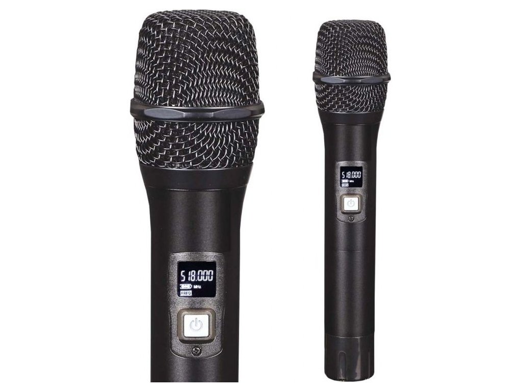 Mikrofony bezprzewodowe są wyposażone w czytelny wyświetlacz LCD wskazujący częstotliwość roboczą nadajnika i stan baterii, a także odbiornik podczerwieni, dzięki któremu można zsynchronizować sygnał wychodzący z odbiornikiem. Urządzenia zasilane są dwiema bateriami AA, które umożliwiają mikrofonom pracę do 8 godzin!